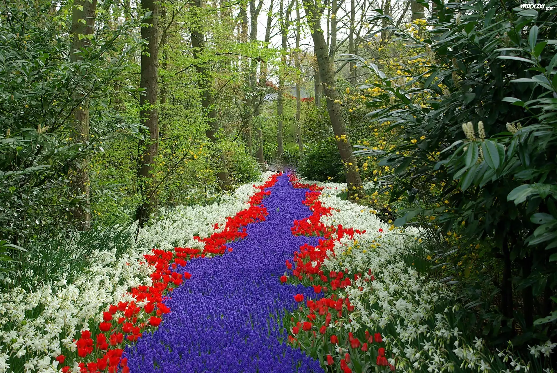 Wiosna, Park, Dywan, Kwiatowy