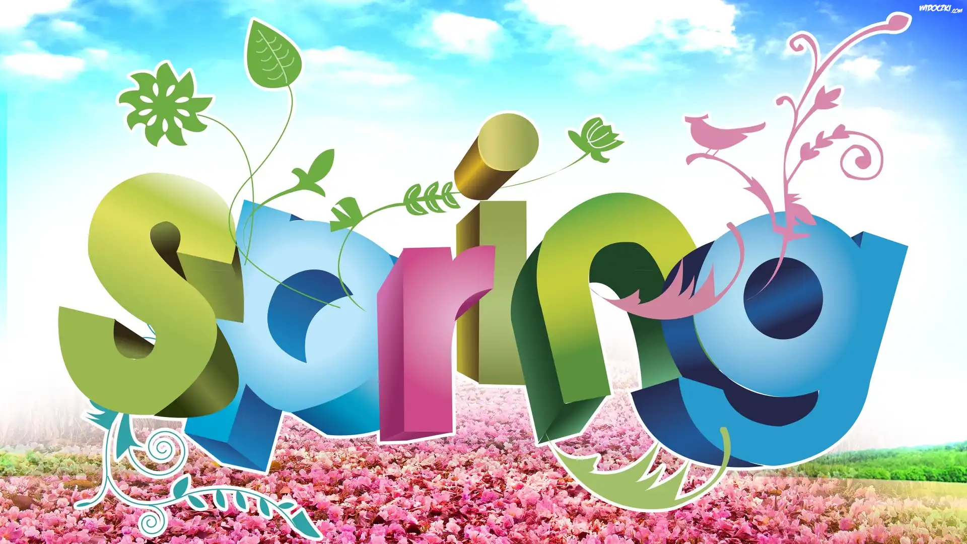 Zdjęcia, Wiosna, Kolorowy, Napis Spring, Grafika 2D