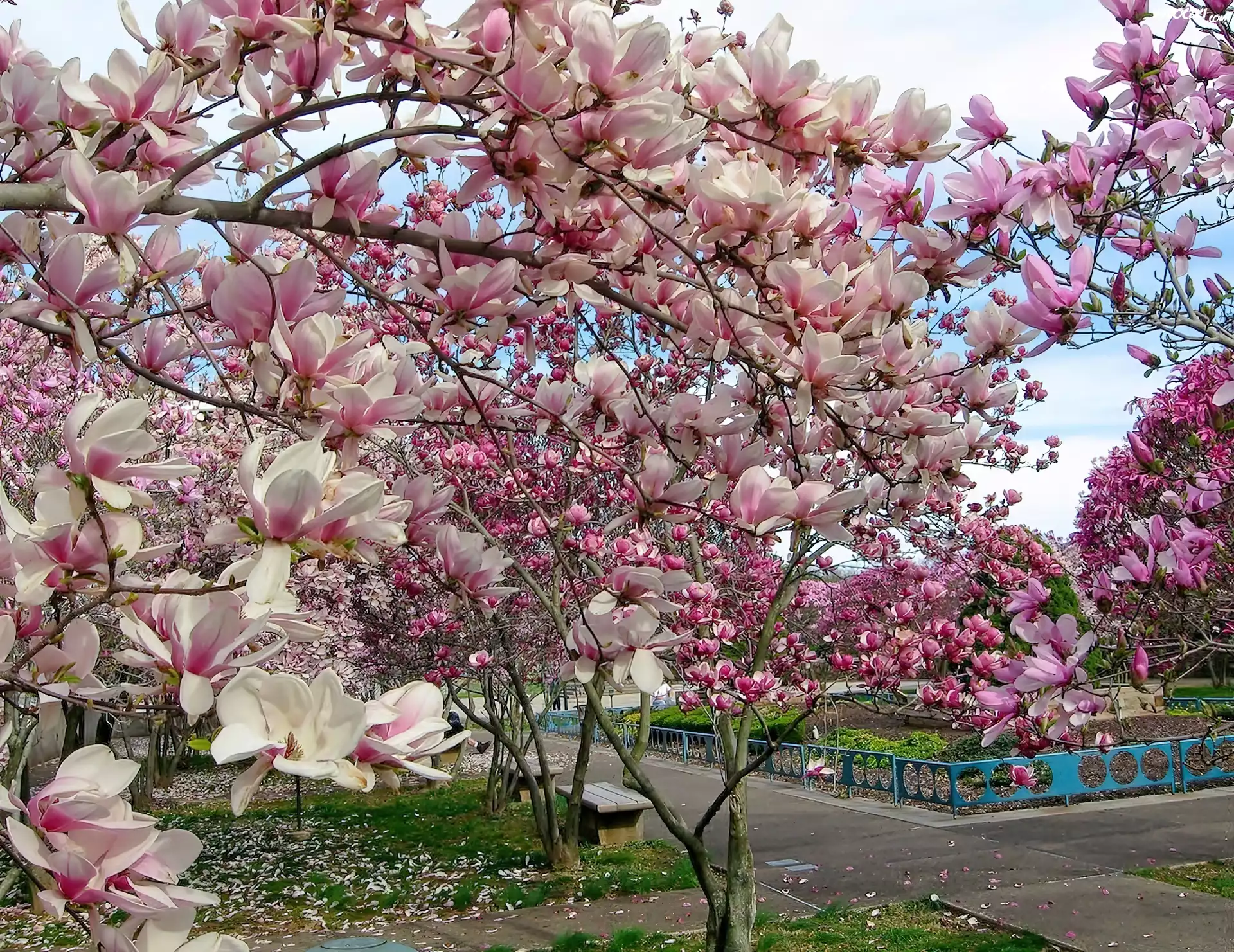 Zdjęcia, Wiosna, Park, Kwitnąca, Magnolia