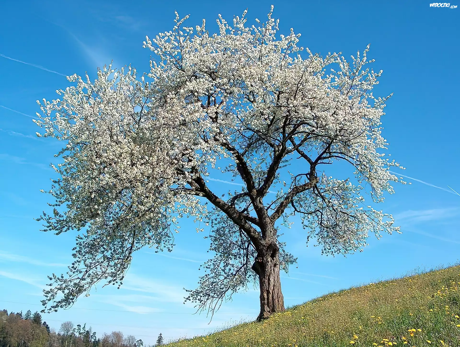Zdjęcia, Wiosna, Łąka, Kwitnące, Drzewo