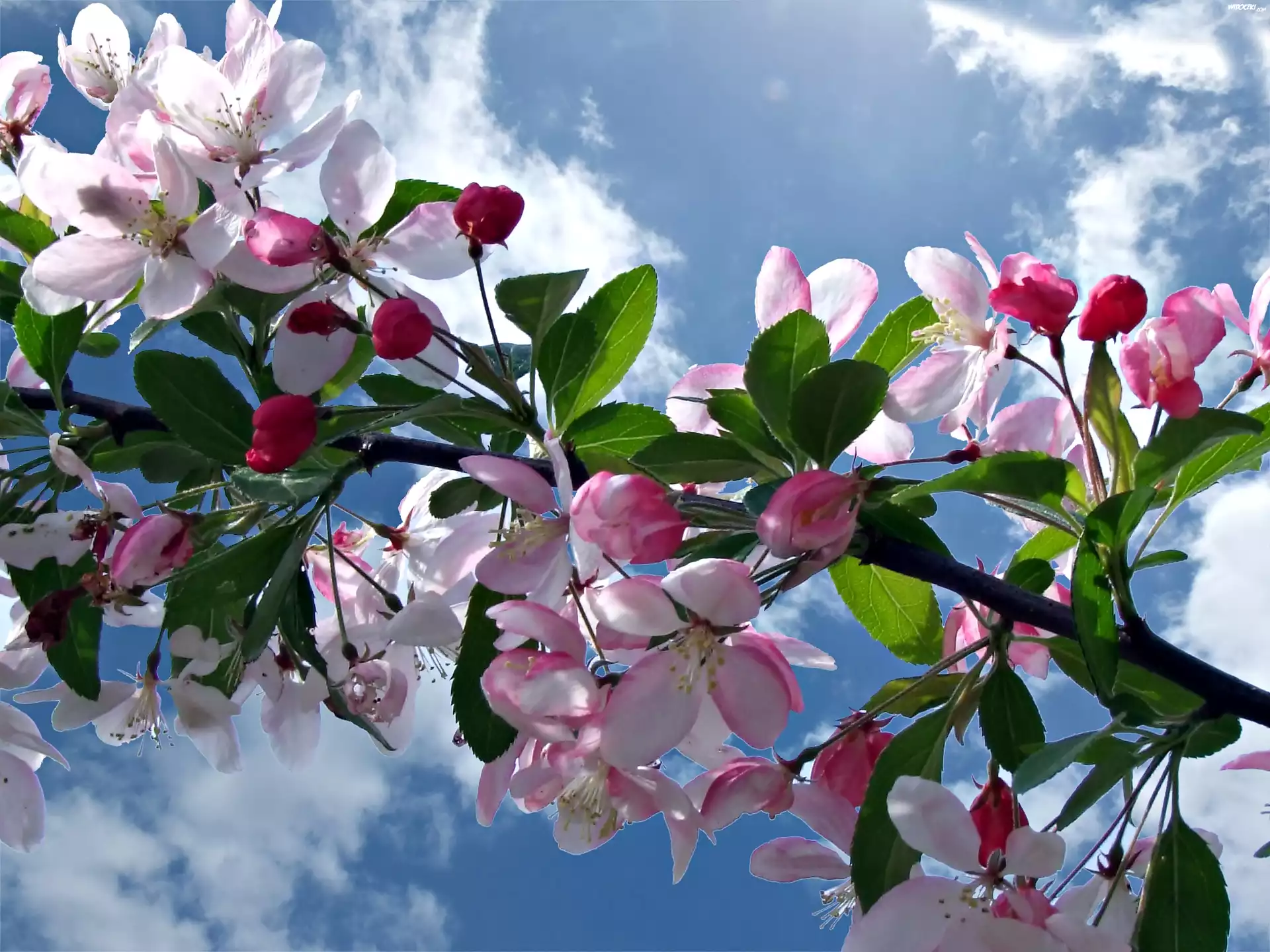 Zdjęcia, Wiosna, Kwiaty Wiśni, Drzewo Owocowe, Niebo