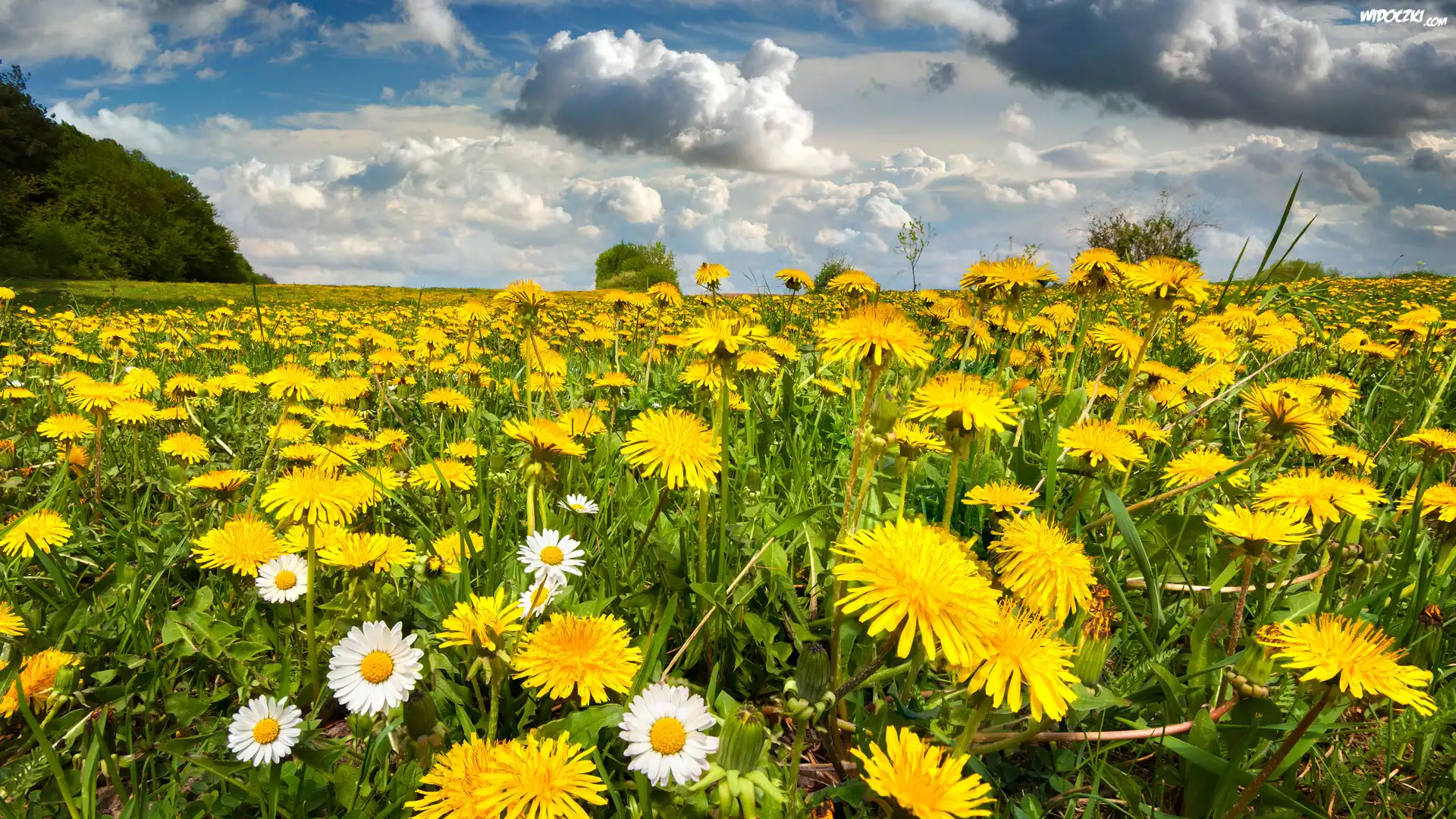 Zdjęcia, Wiosna, Łąka, Kwiaty, Mniszek pospolity, Stokrotki