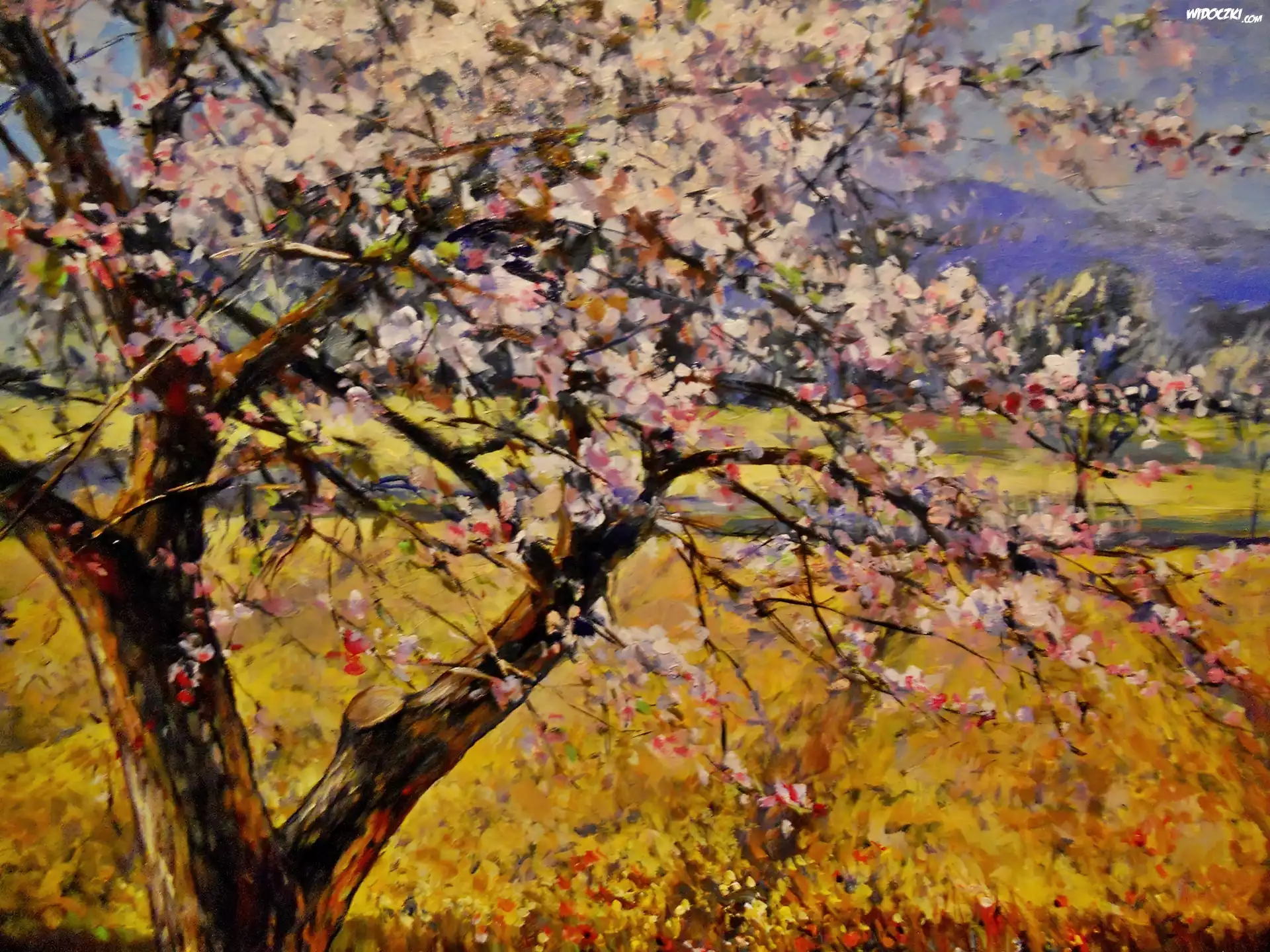 Zdjęcia, Wiosna, Kwitnące, Drzewo, Reprodukcja, Obrazów