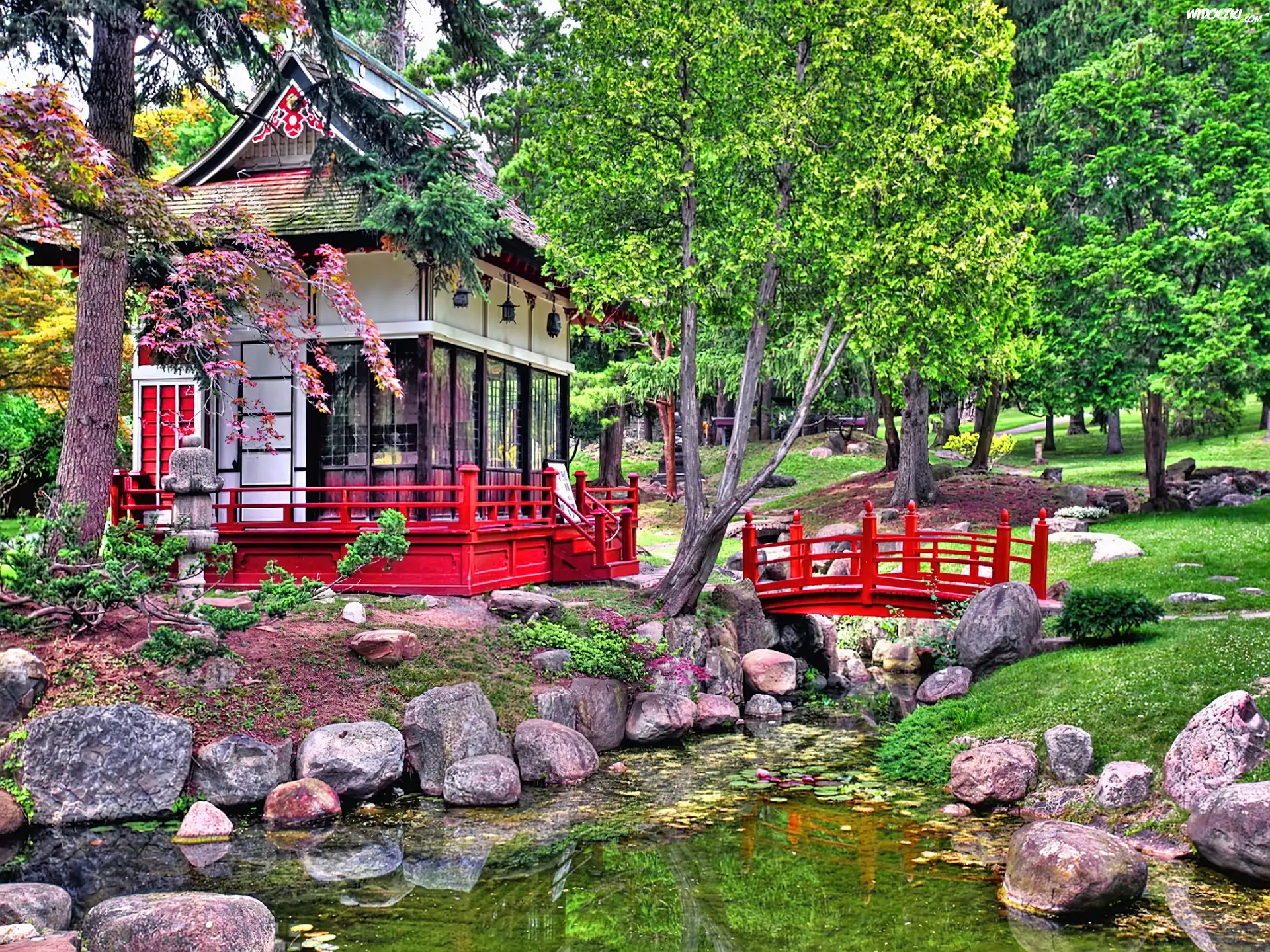 Zdjęcia, Wiosna, Mostek, Rzeczka, Domek