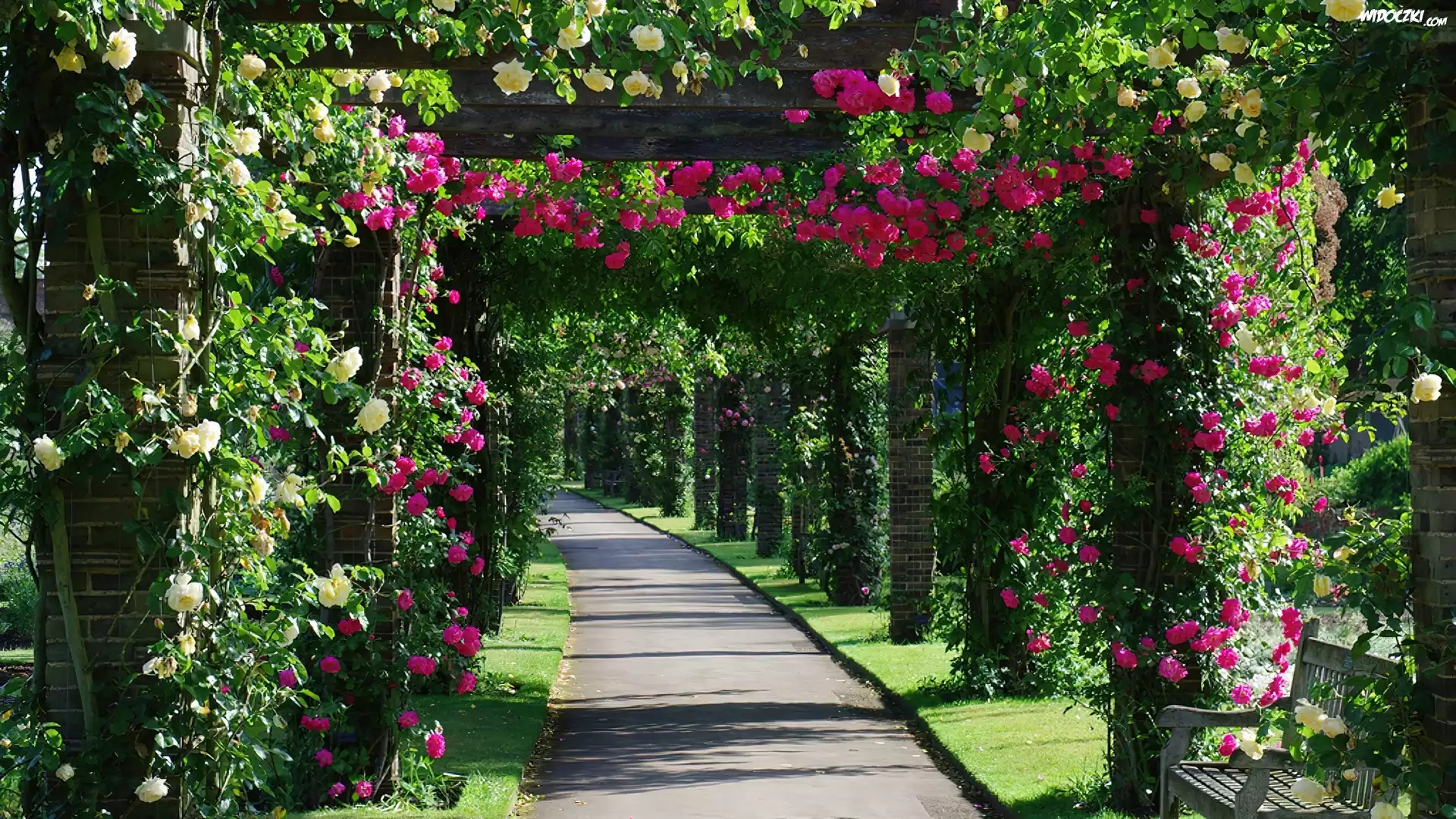 Zdjęcia, Wiszące, Róże, Alejka, Park