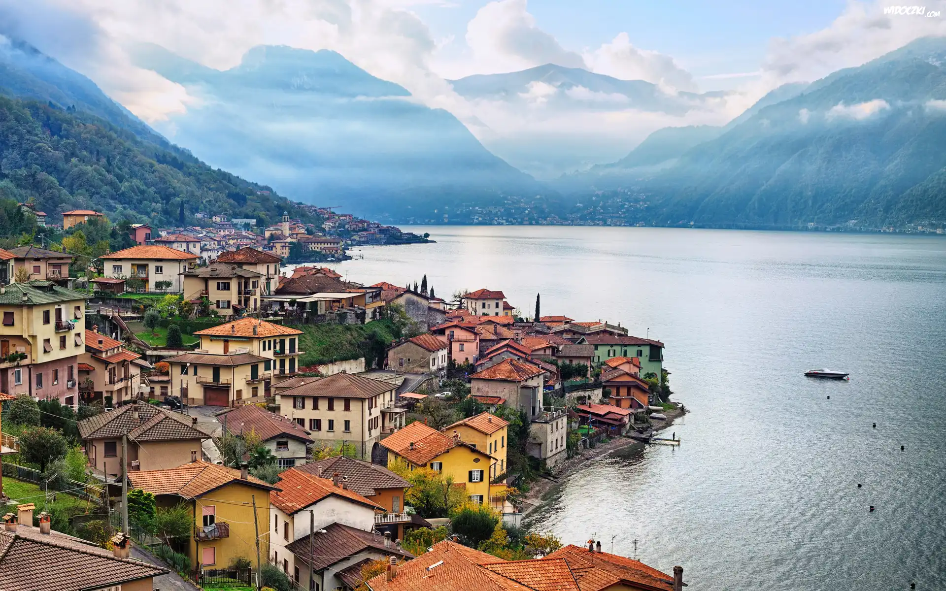 Zdjęcia, Jezioro Como, Miasto Como, Domy, Góry Alpy, Region Lombardia, Włochy