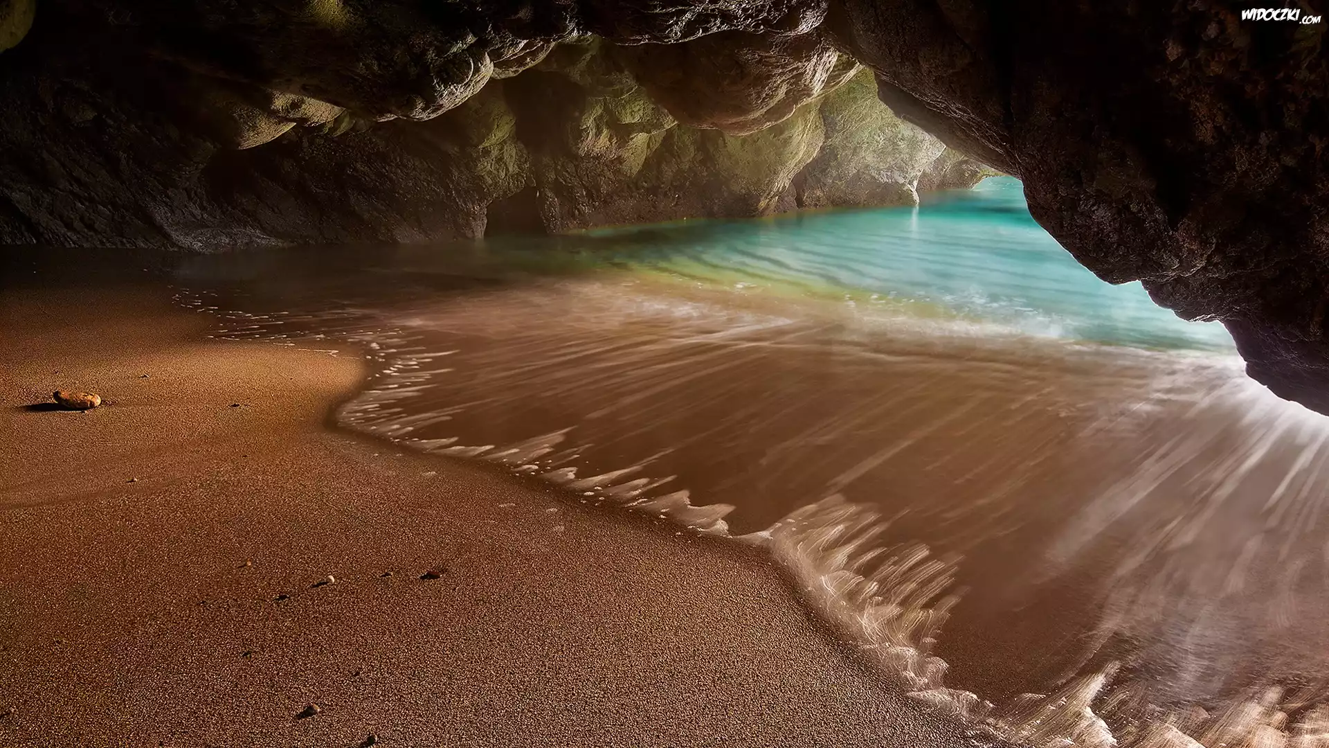 Zdjęcia, Włochy, Jaskinia, Skały, Fala, Woda