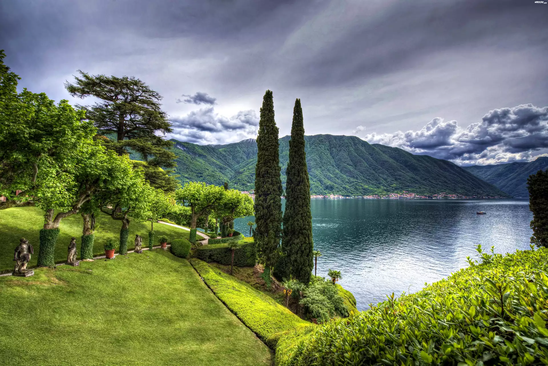Zdjęcia, Włochy, Jezioro , Góry, Drzewa