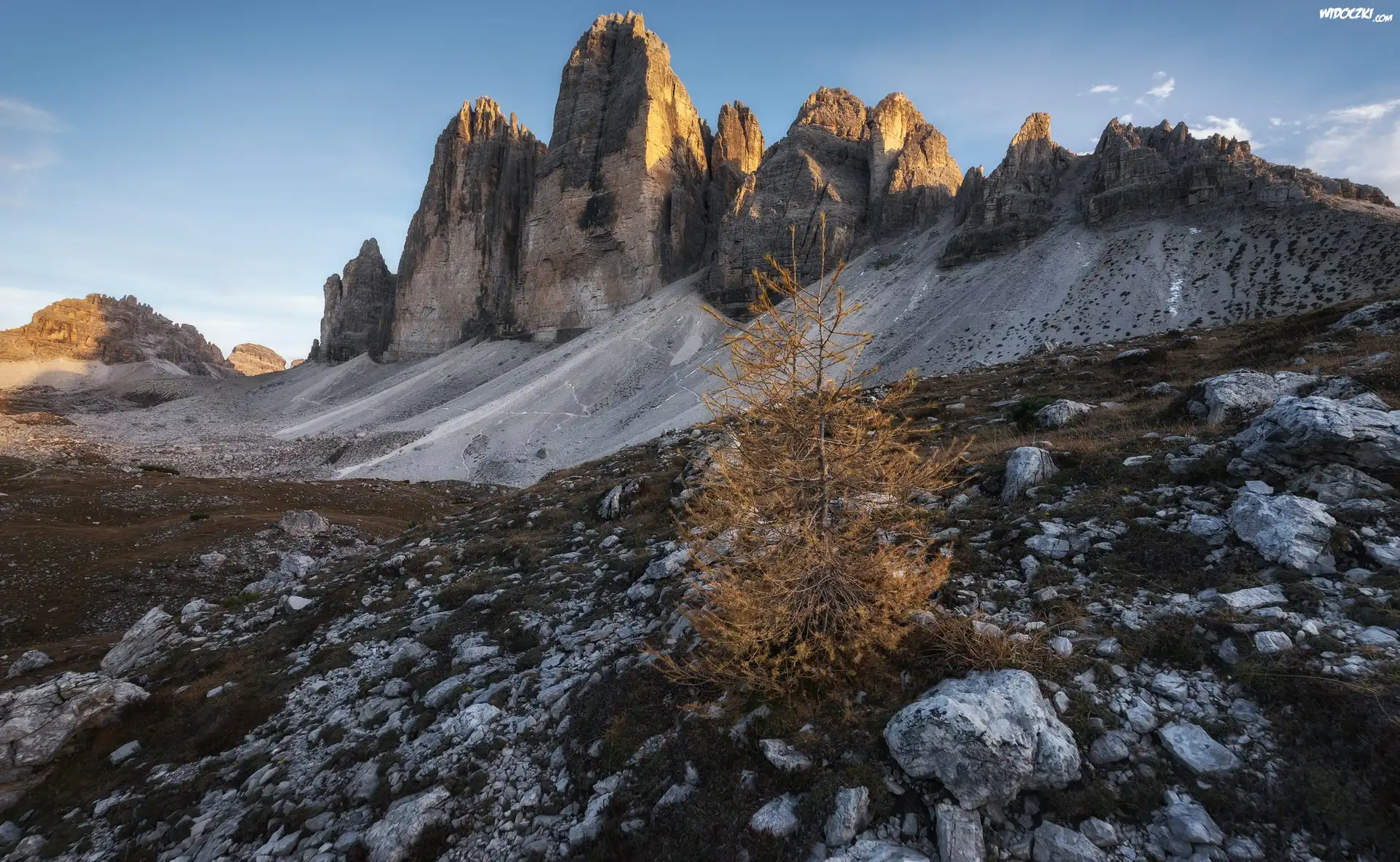 Zdjęcia, Drzewo, Kamienie, Góry, Tre Cime di Lavaredo, Dolomity, Włochy