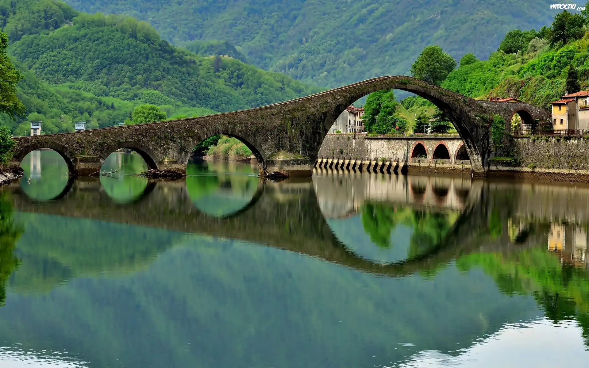 Zdjęcia, Włochy, Rzeka, Most, Góry, Las