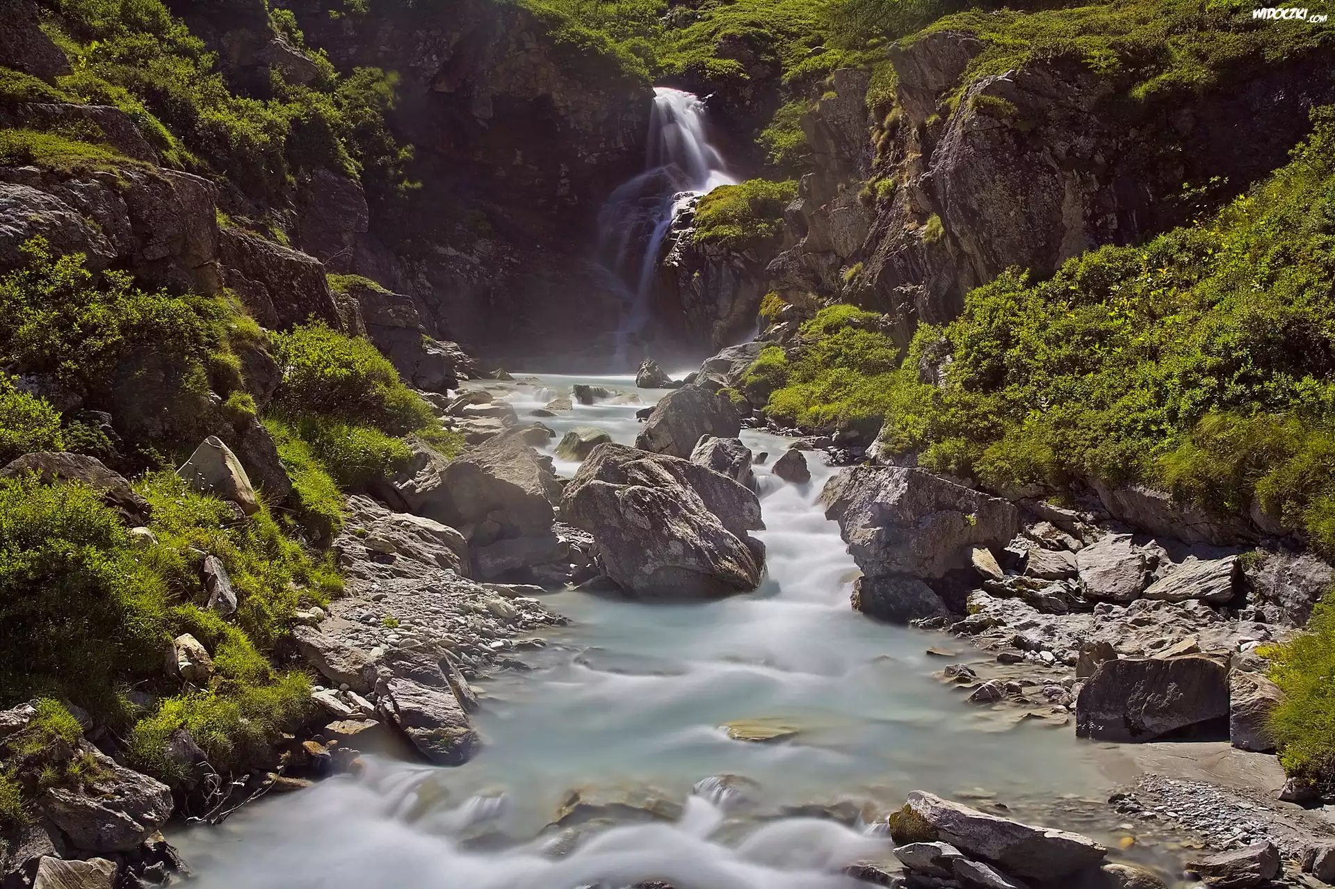 Włochy, Park Narodowy Parco Nazionale del Gran Paradiso, Dolina Aosta, Rzeka, Kamienie, Roślinność |