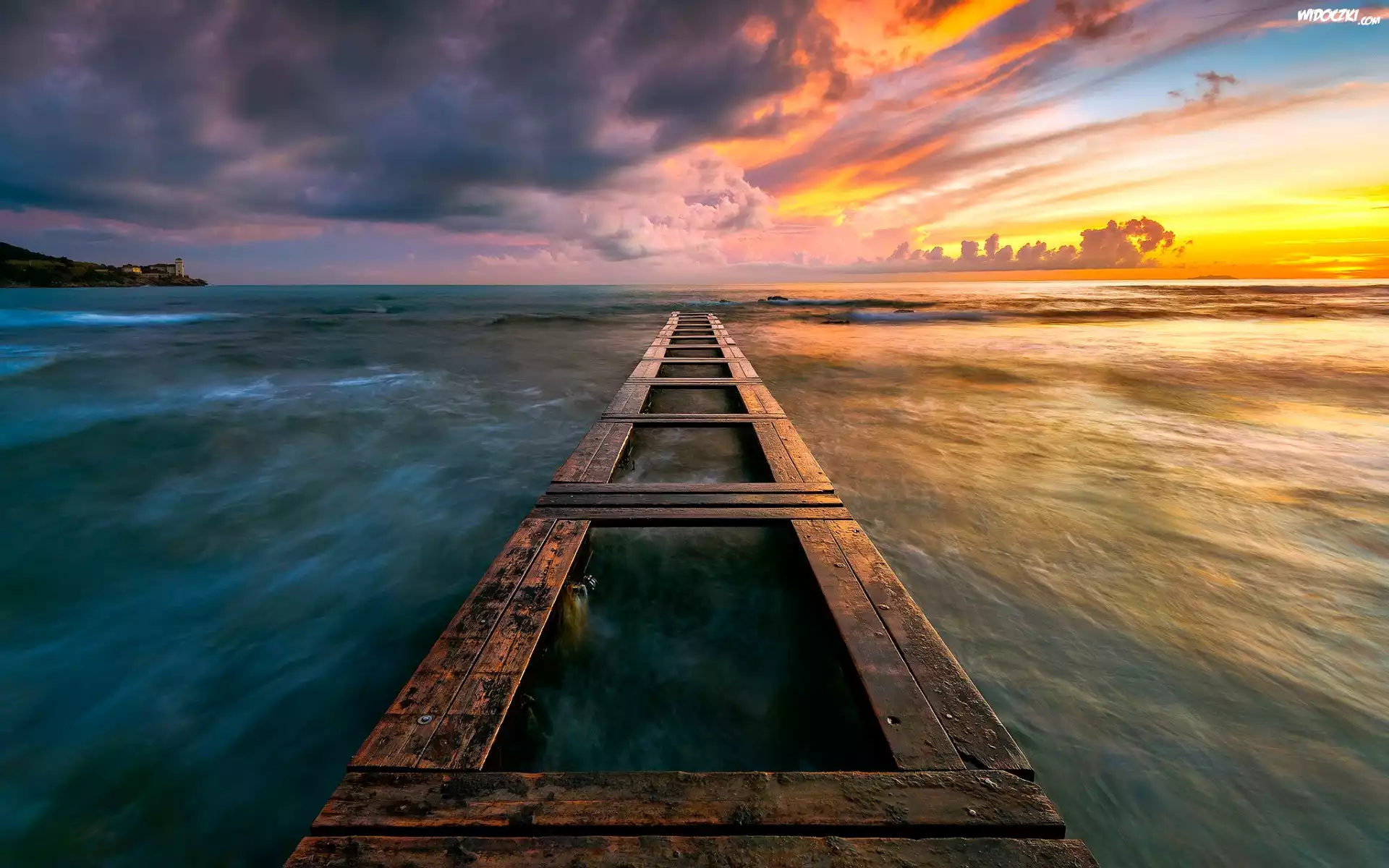 Zdjęcia, Włochy, Toskania, Morze, Wschód Słońca, Pomost