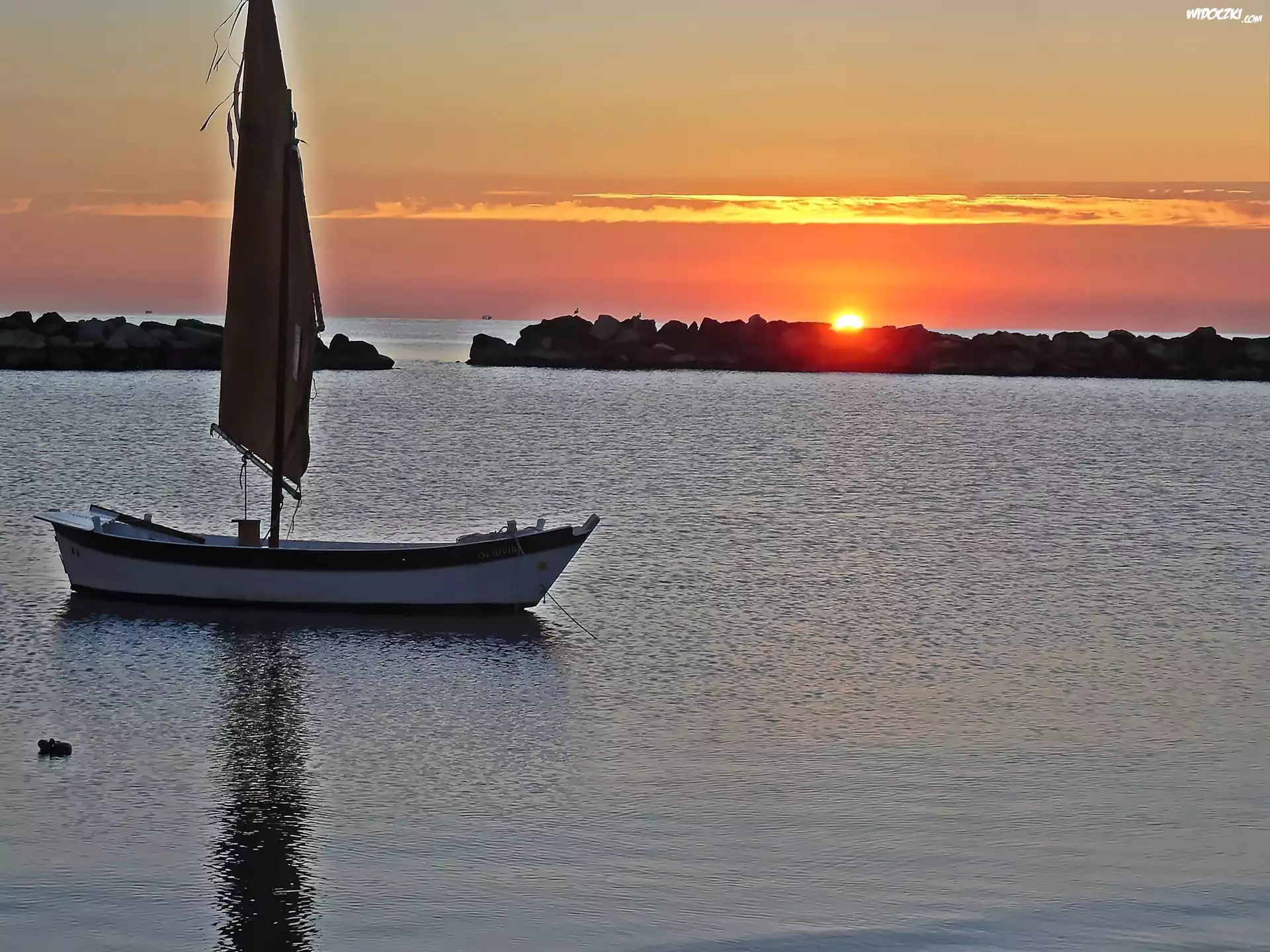 Zdjęcia, Włochy, Morze, Zachód Słońca, Łódka