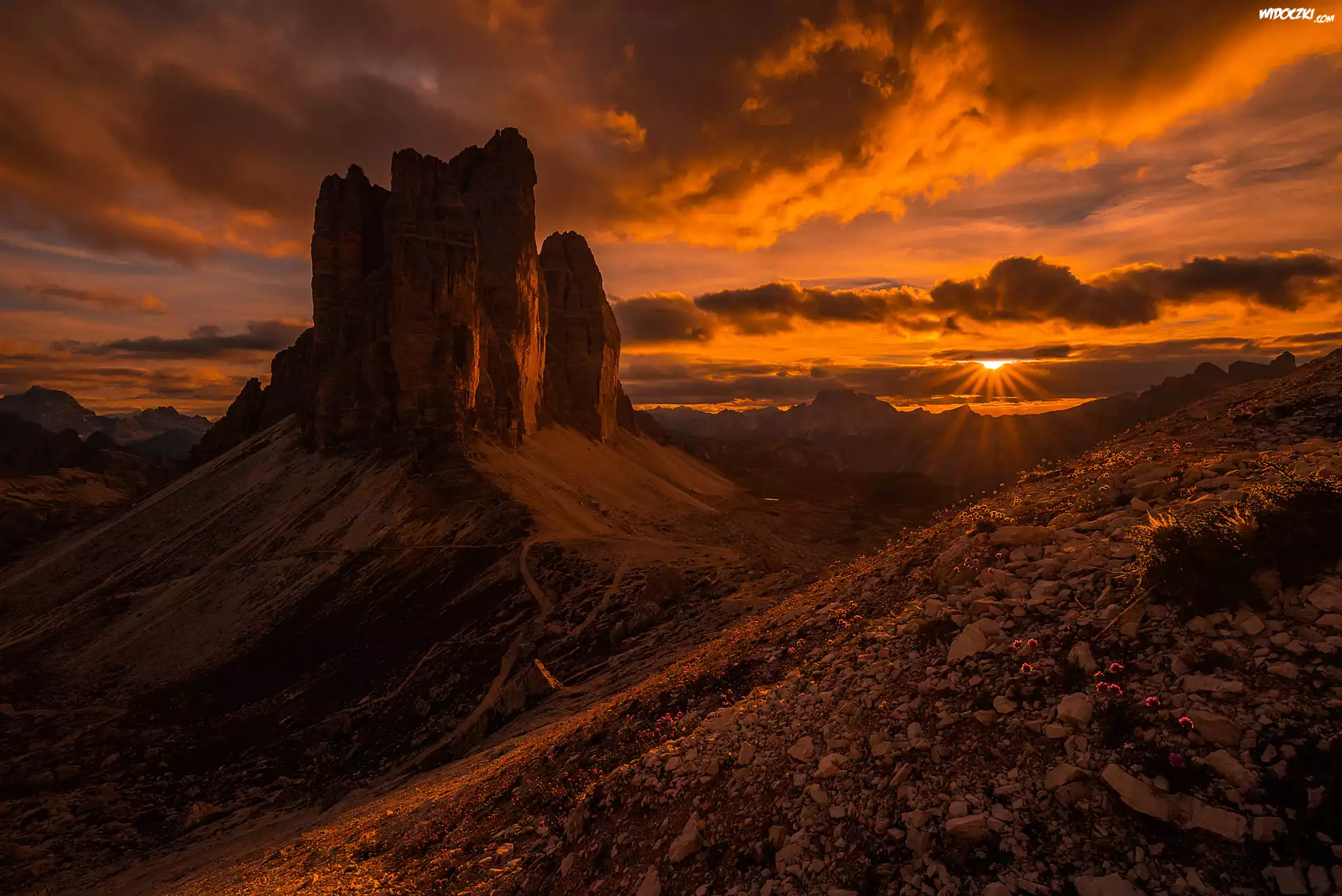 Zdjęcia, Włochy, Dolomity, Góry, Zachód Słońca