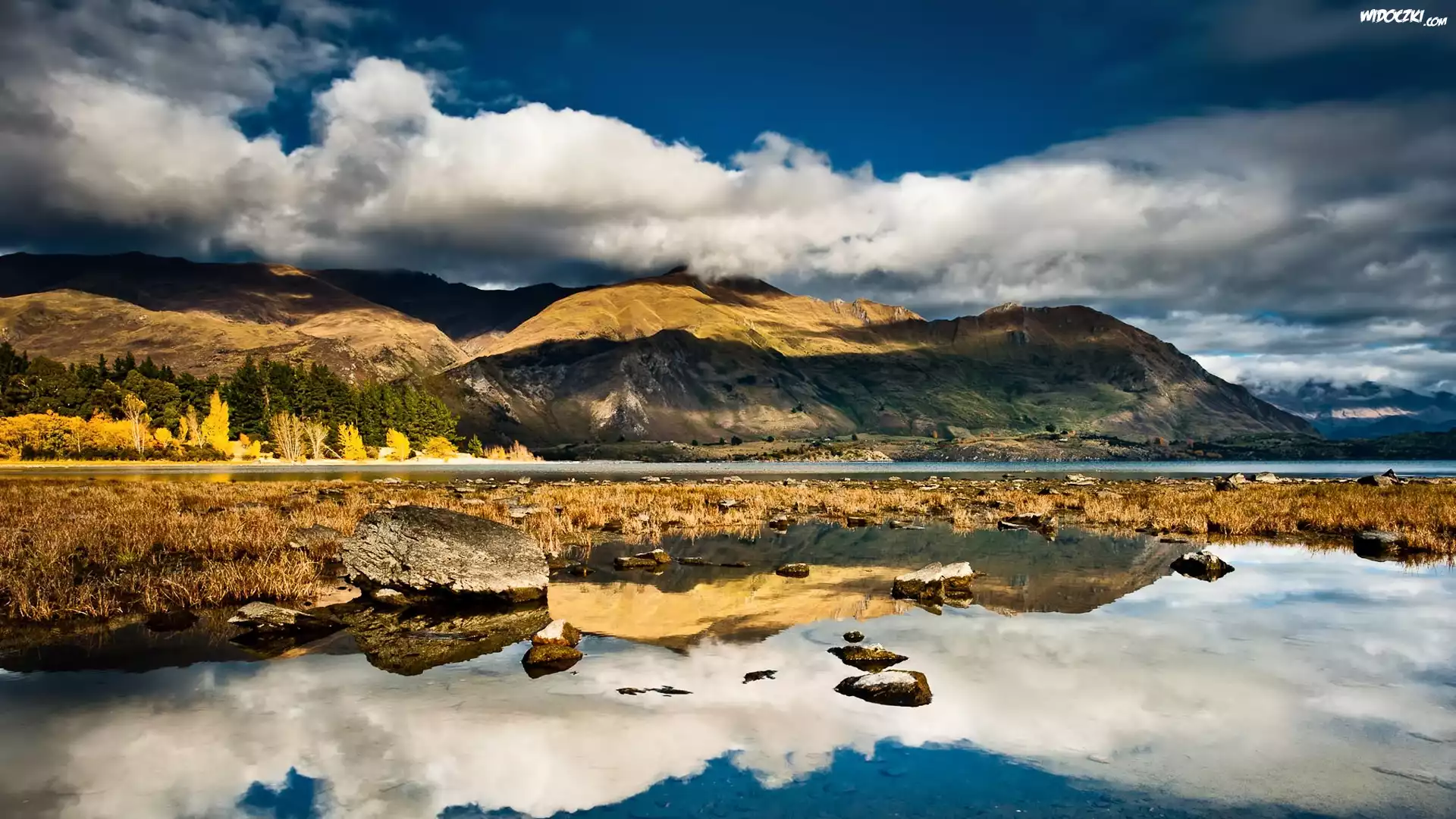 Zdj臋cia, Woda, Niebo, Chmury, Drzewa