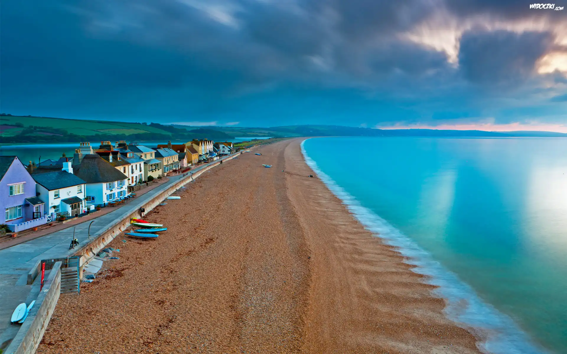 Zdjęcia, Woda, Piasek, Łódki, Chmury, Domy