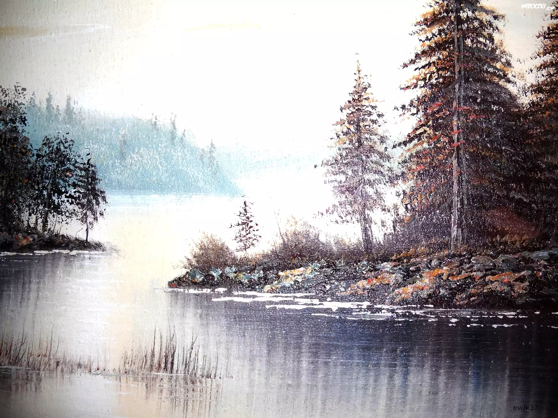 Zdjęcia, Woda, Sitowie, Jesień, Obraz