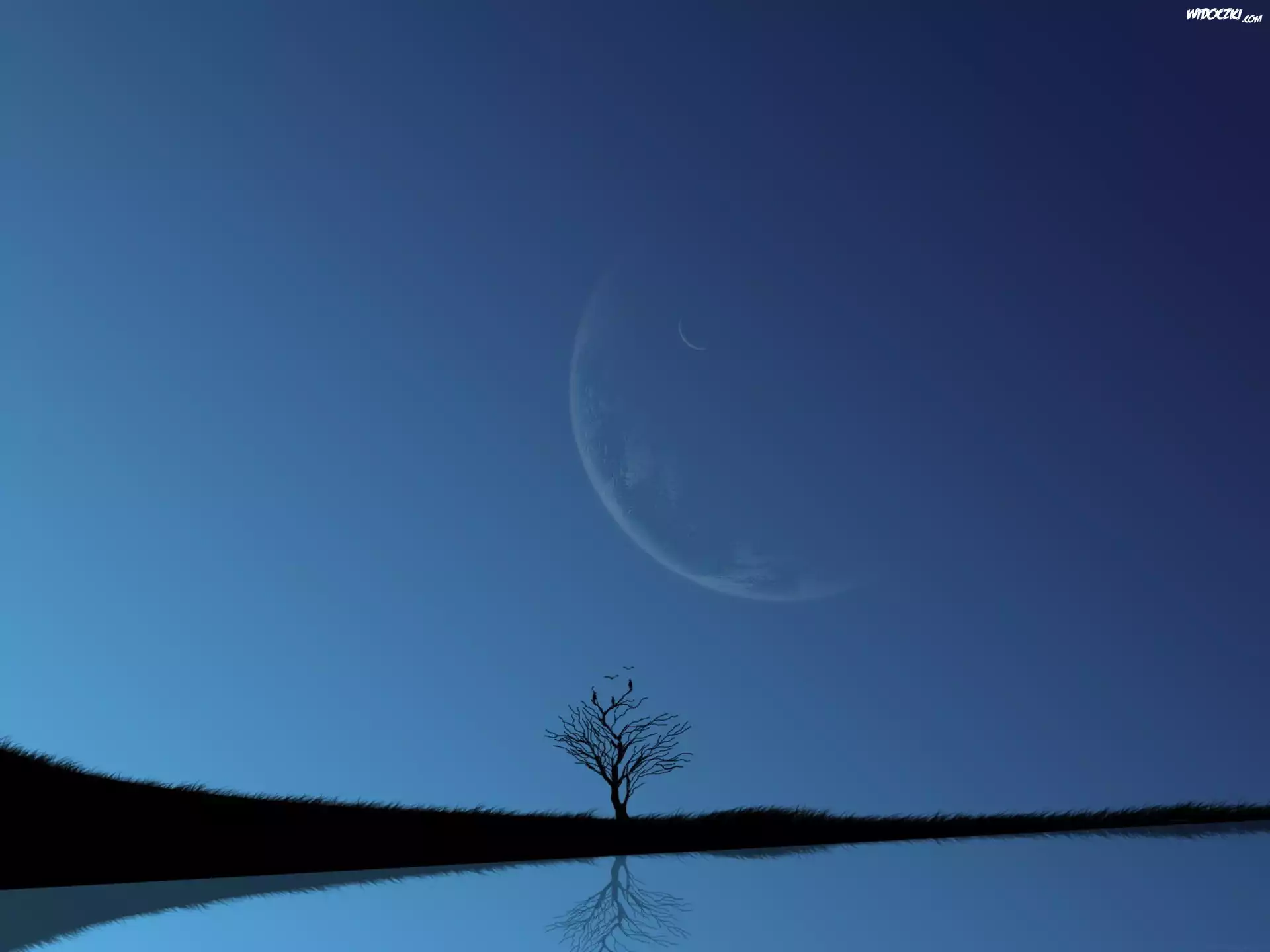 Zdjęcia, Woda, Niebo, Księżyc, Drzewo