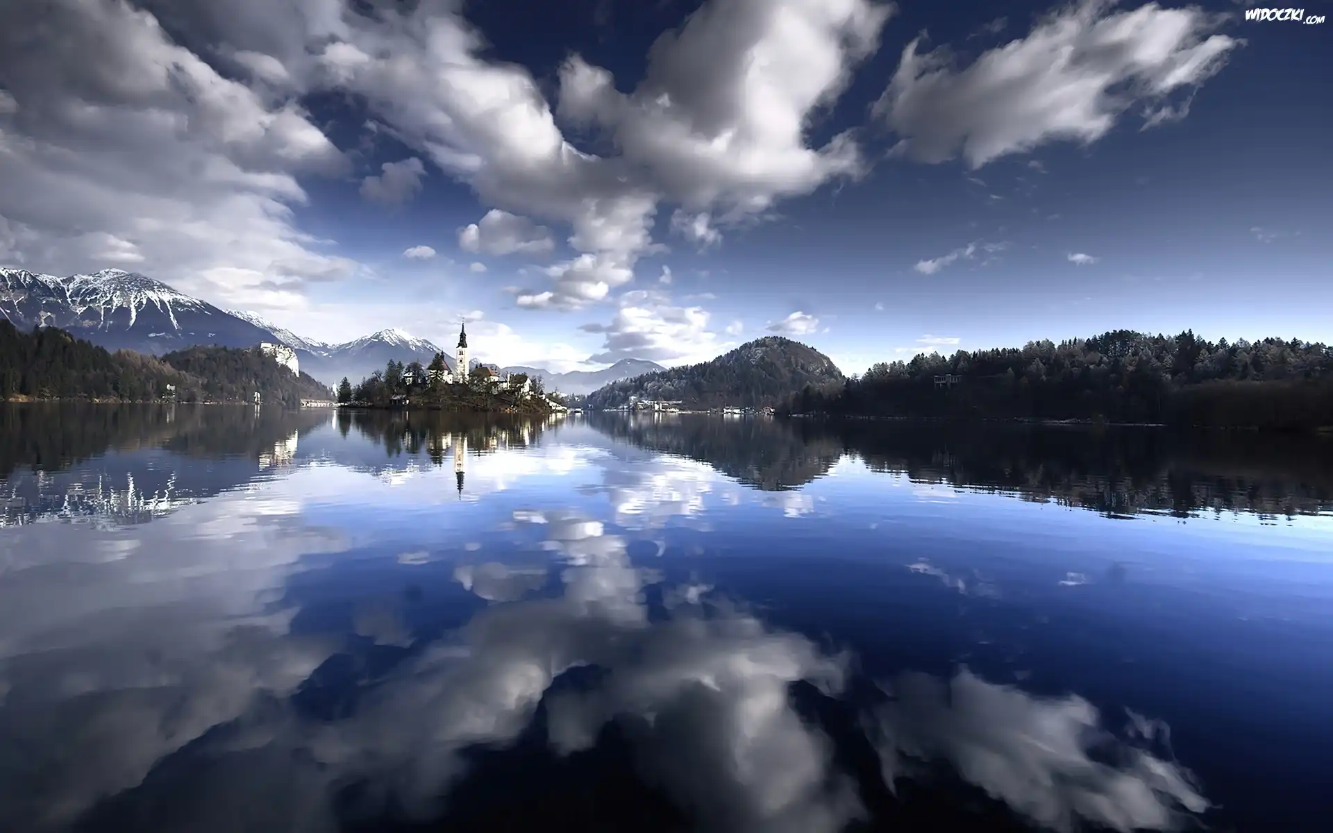 Zdjęcia, Woda, Góry, Miasteczko, Odbicie