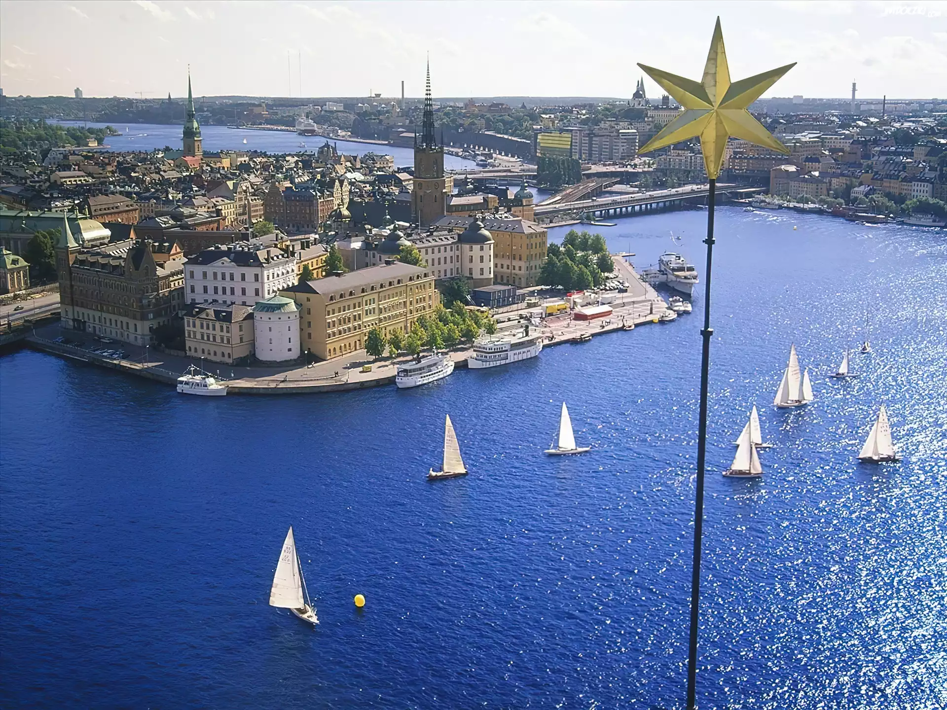 Zdjęcia, Woda, Żaglówki, Zabudowania, Most, Gwiazda