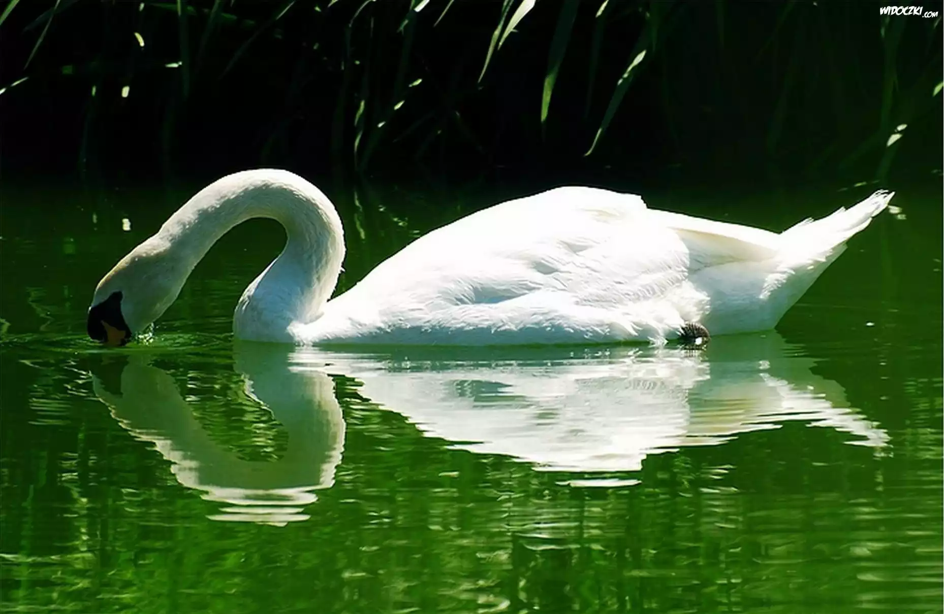 Zdjęcia, Łabędź, Odbicie, Woda, Jezioro