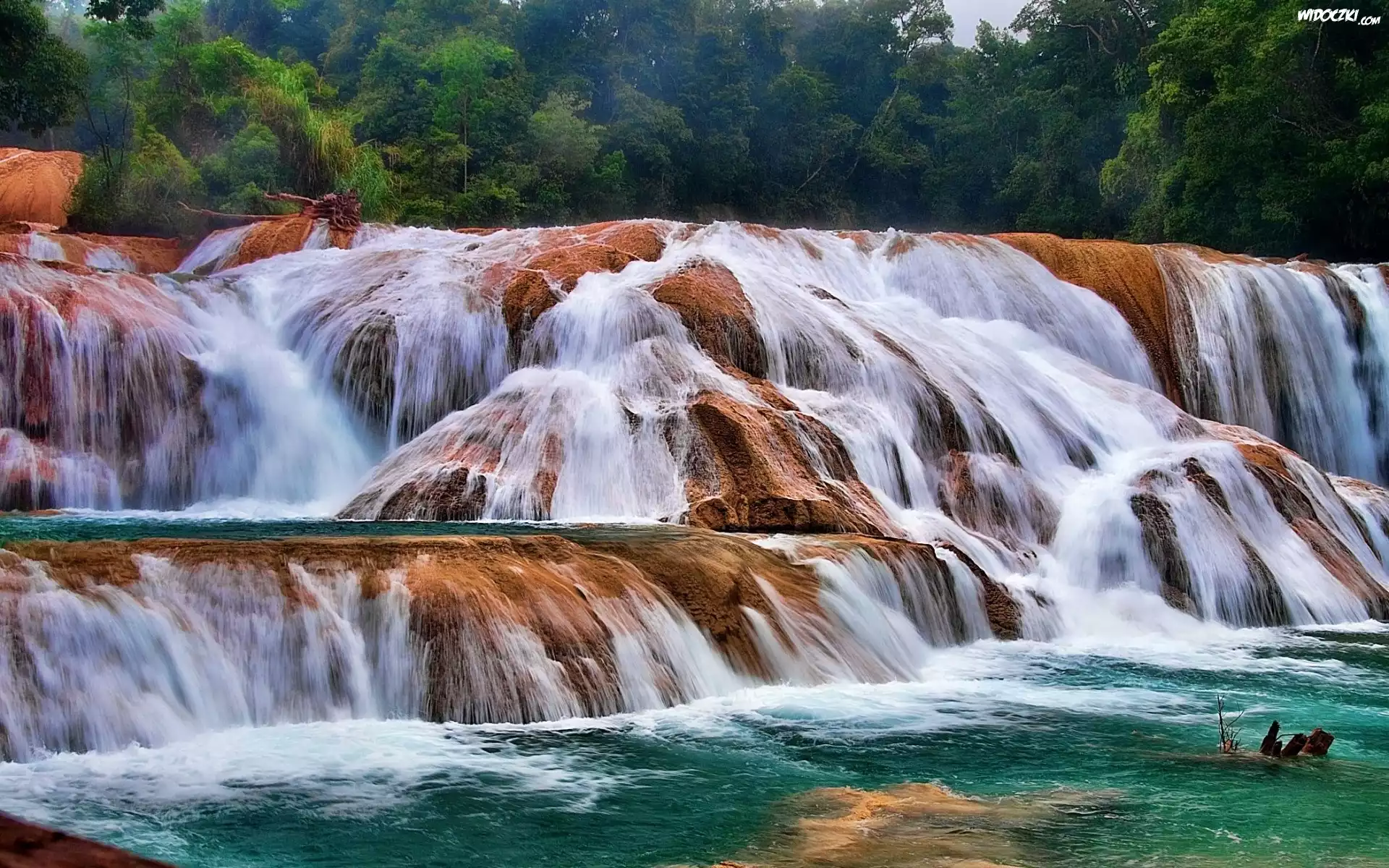 Zdjęcia, Wodospad, Agua Azul, Chiapas, Meksyk
