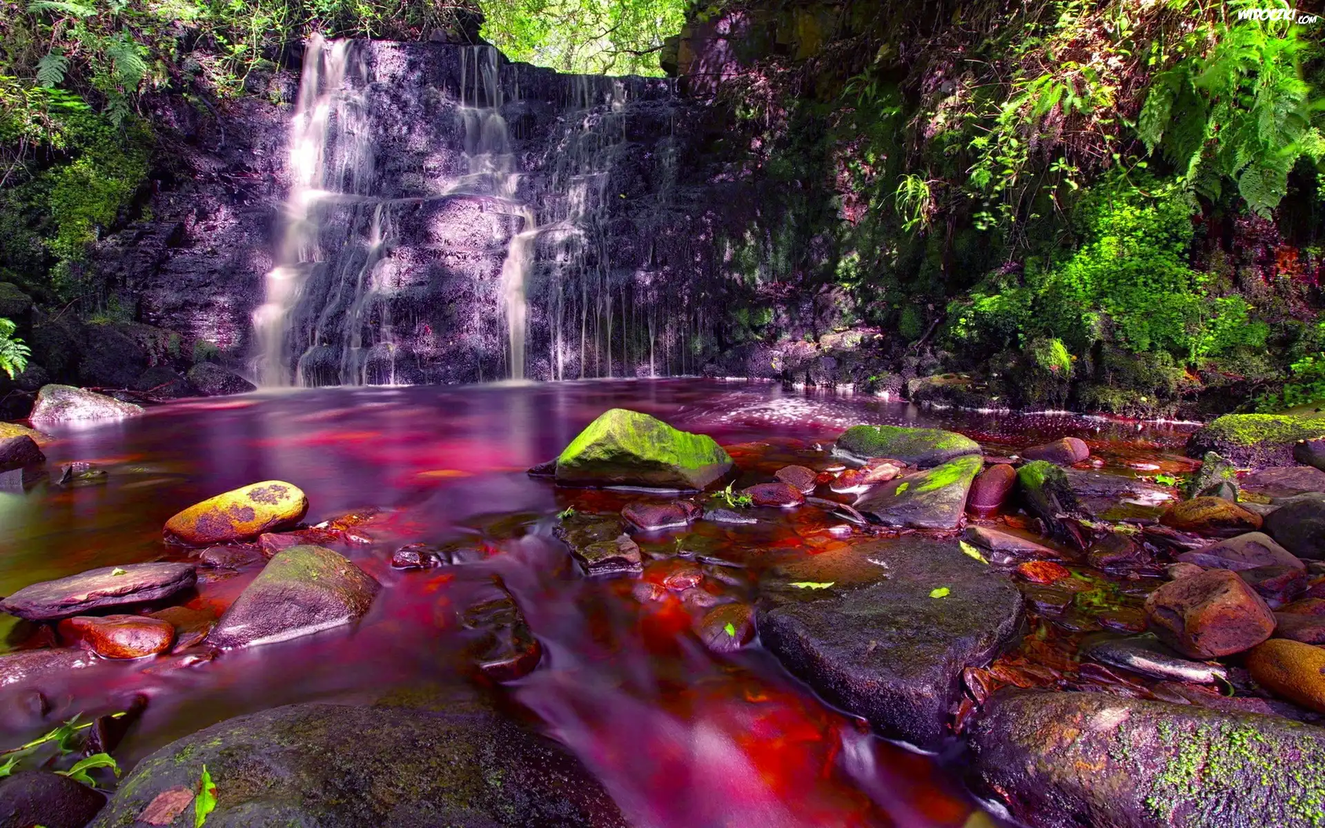 Zdjęcia, Wodospad, W, Lesie, Czerwona, Woda