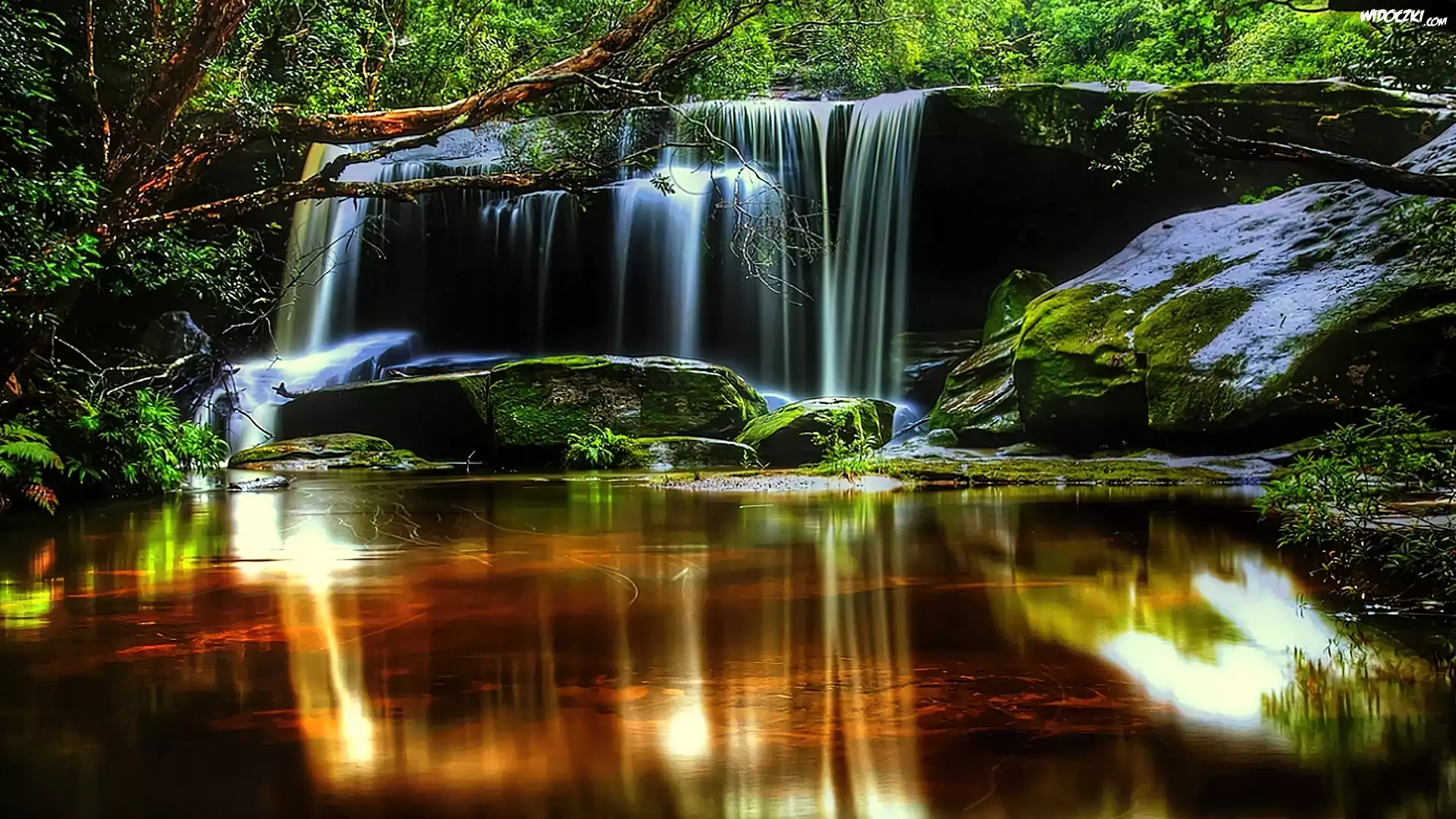 Zdjęcia, Wodospad, Drzewa