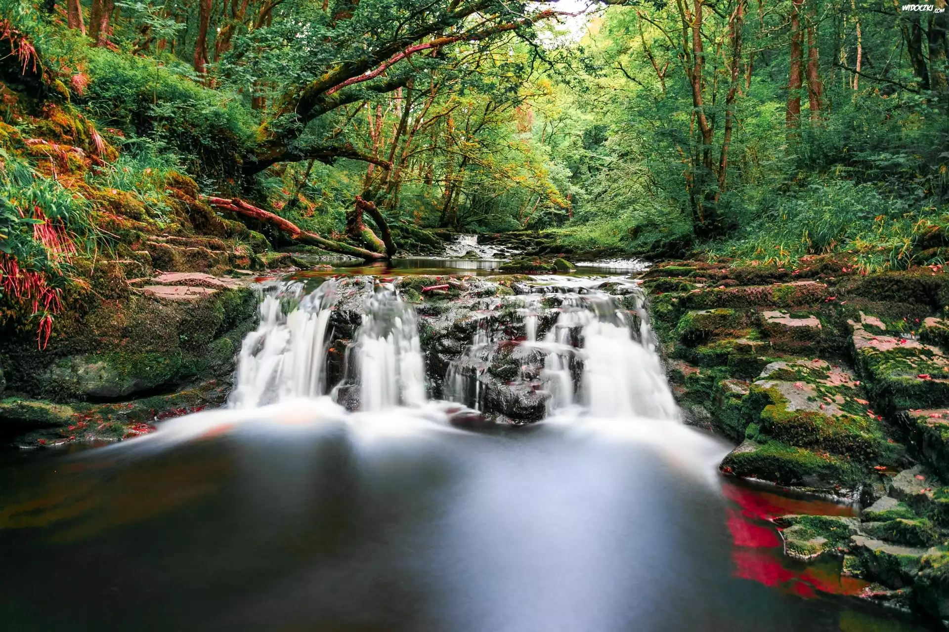 Zdjęcia, Wodospad, Skały, Drzewa, Mech