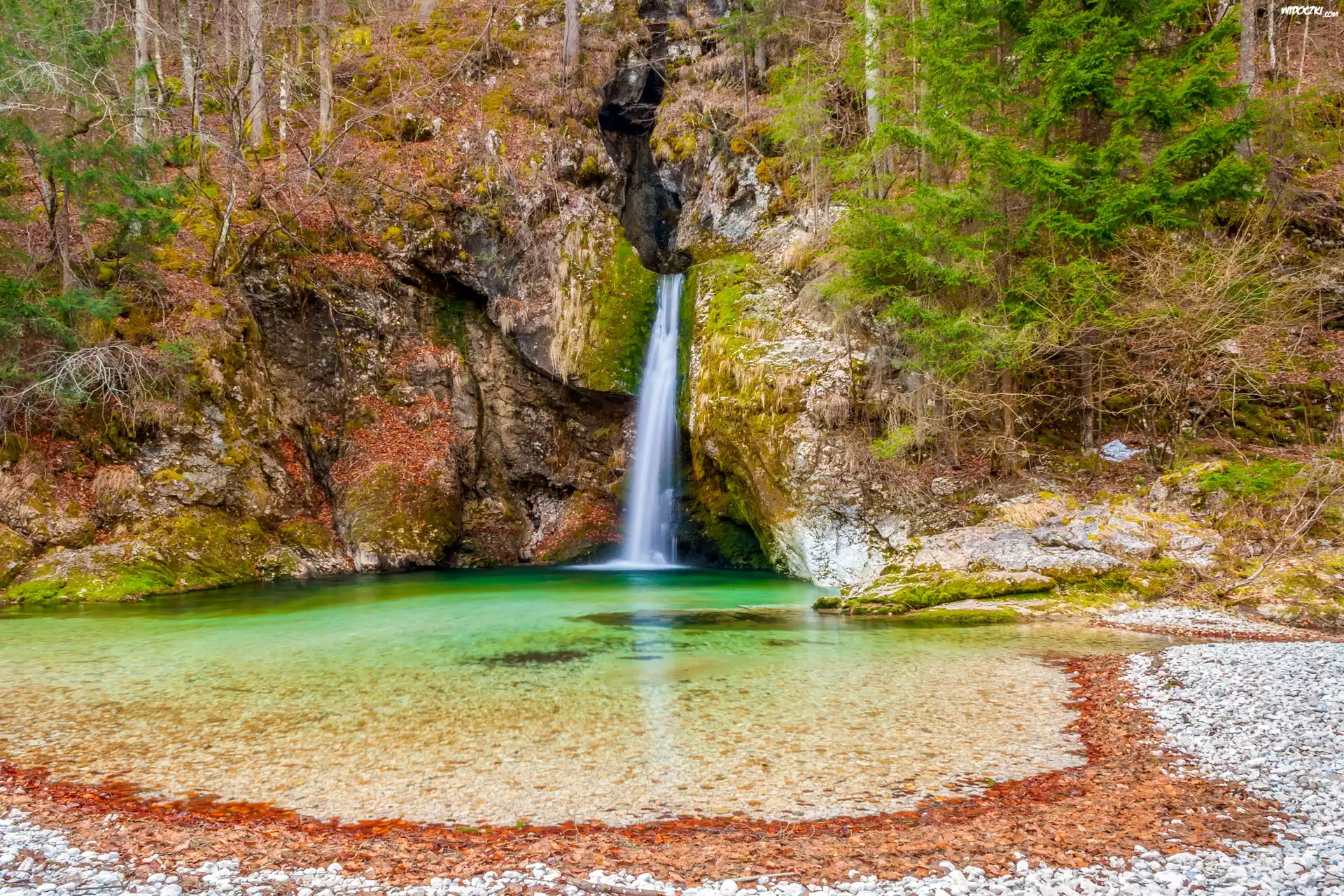 Zdjęcia, Wodospad, Skały, Drzewa, Roślinność