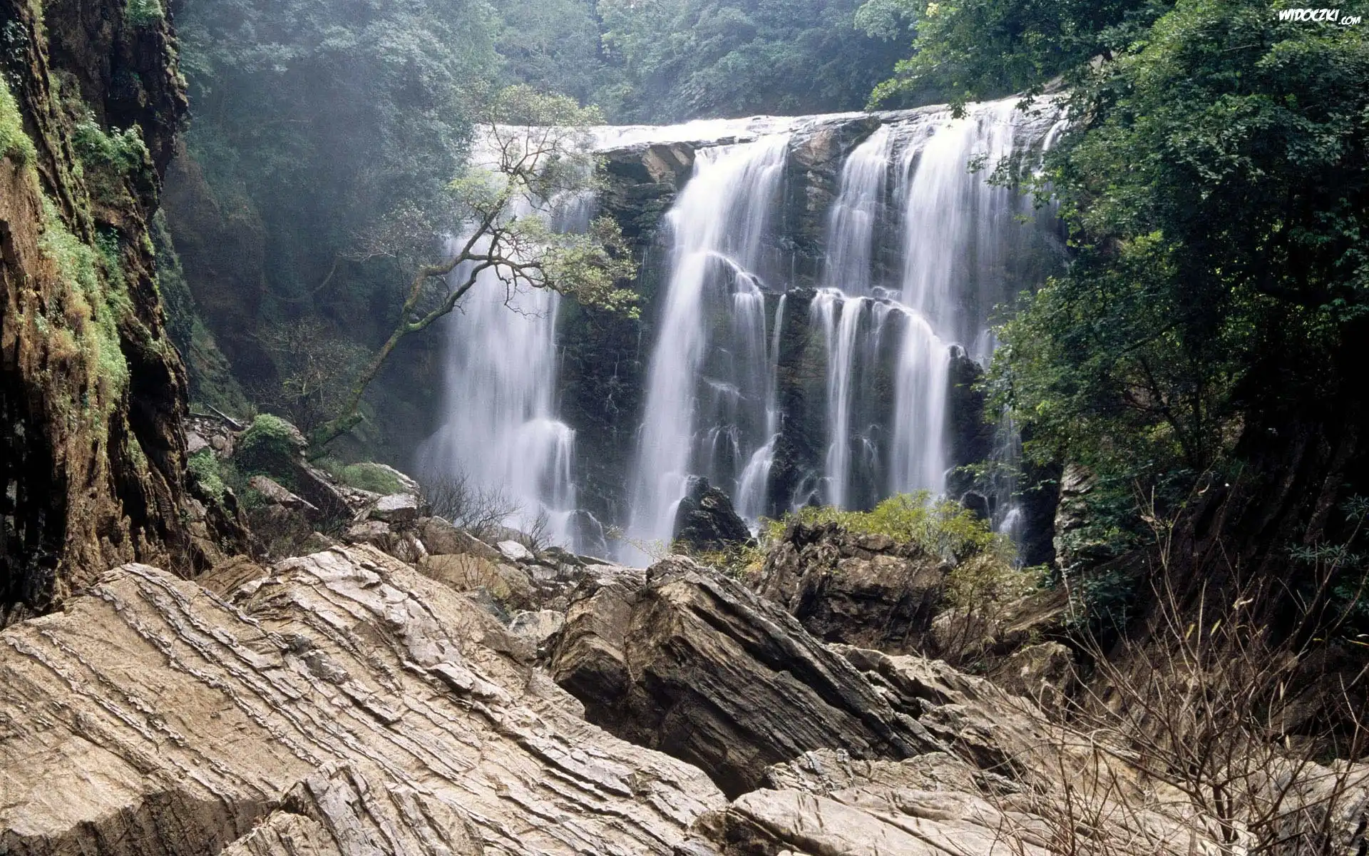 Wodospad, Wysokość, Drzewa, Skały