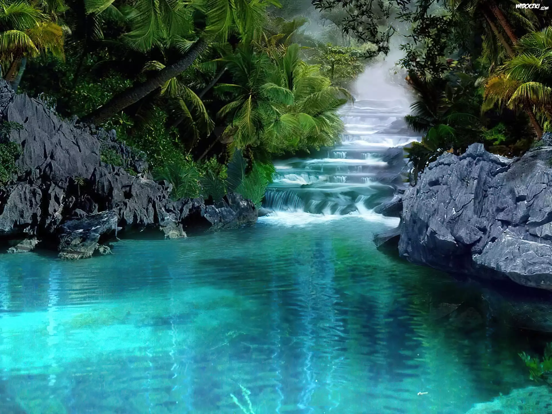 Dżungla, Wodospad, Skały