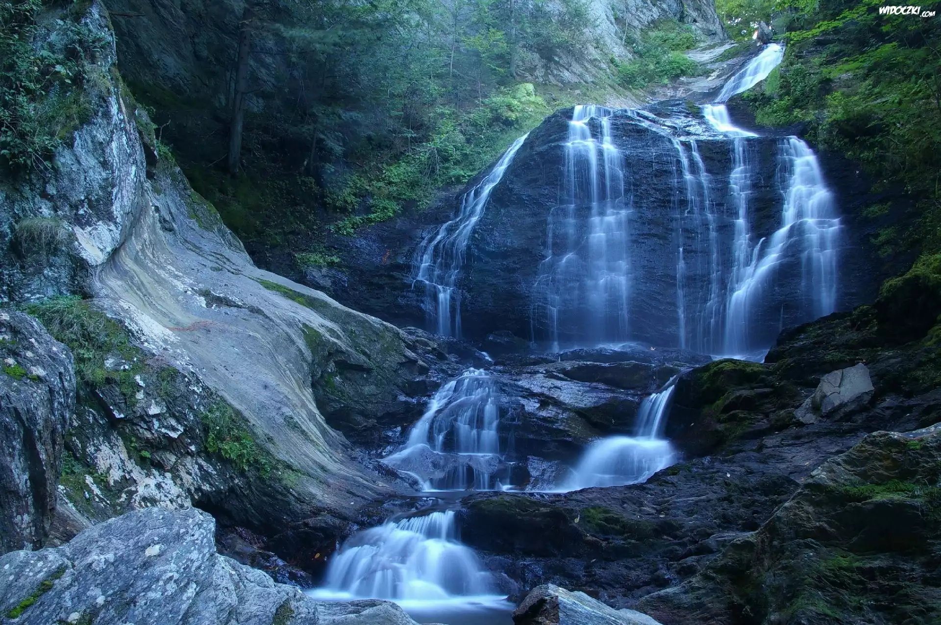 Zdjęcia, Wodospad, Skały, Góra, Mech