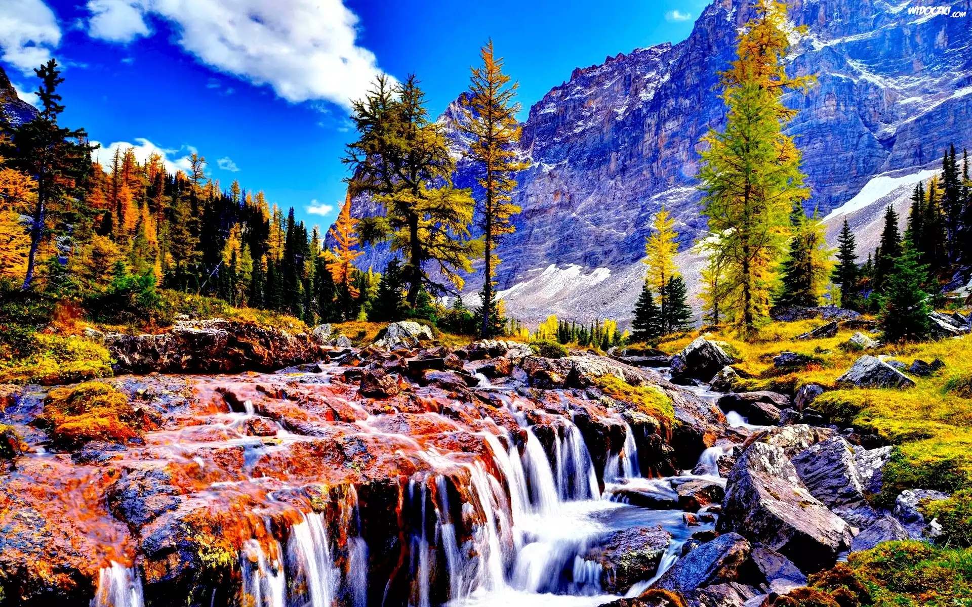 Zdjęcia, Góry, Wodospad, Drzewa