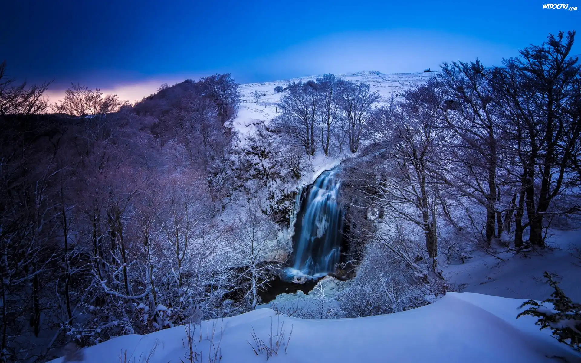 Zdjęcia, Wodospad, Drzewa, Góry, Zima