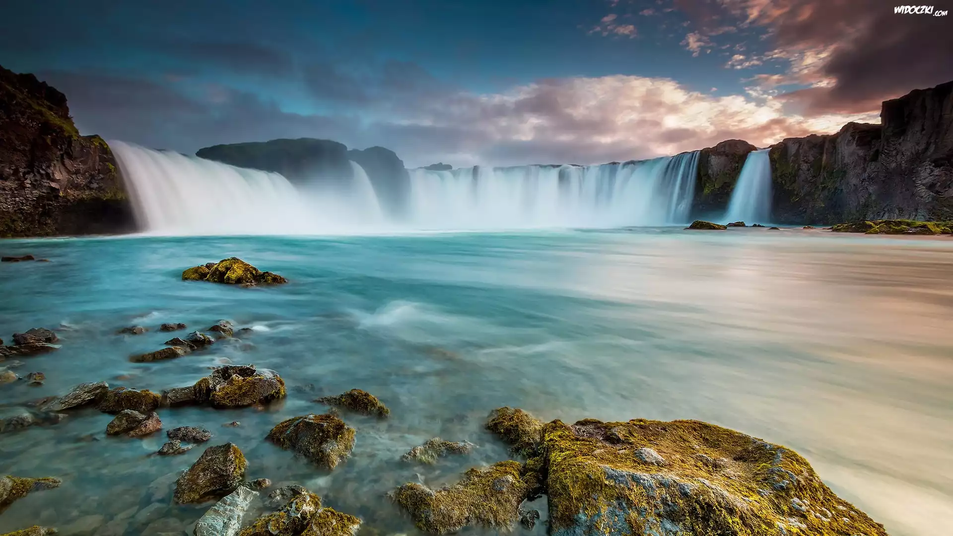 Zdjęcia, Islandia, Wodospad Godafoss, Rzeka Skjálfandafljót, Skały