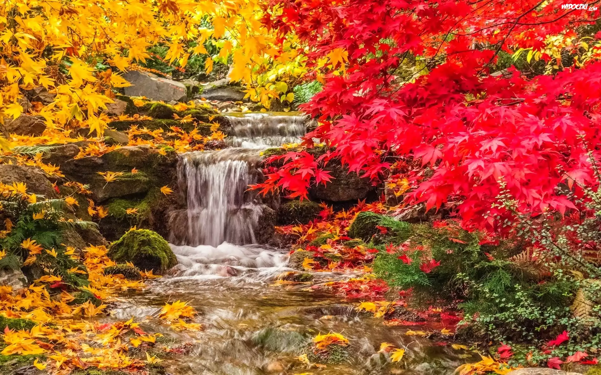 Jesień, Liście Wodospad, drzewa Wodospad Wierzchołki, Kolorowych, Drzew Droga, Jesień Wodospad w lesie Wodospad Kasztany Jesień, Ławka, Drzewa, Park Wodospad Jesień Droga, Las, Jesień Wodospad Tęcze Szczyt, Górski, Staw Las, Jesień, Tory Tory kolejowe