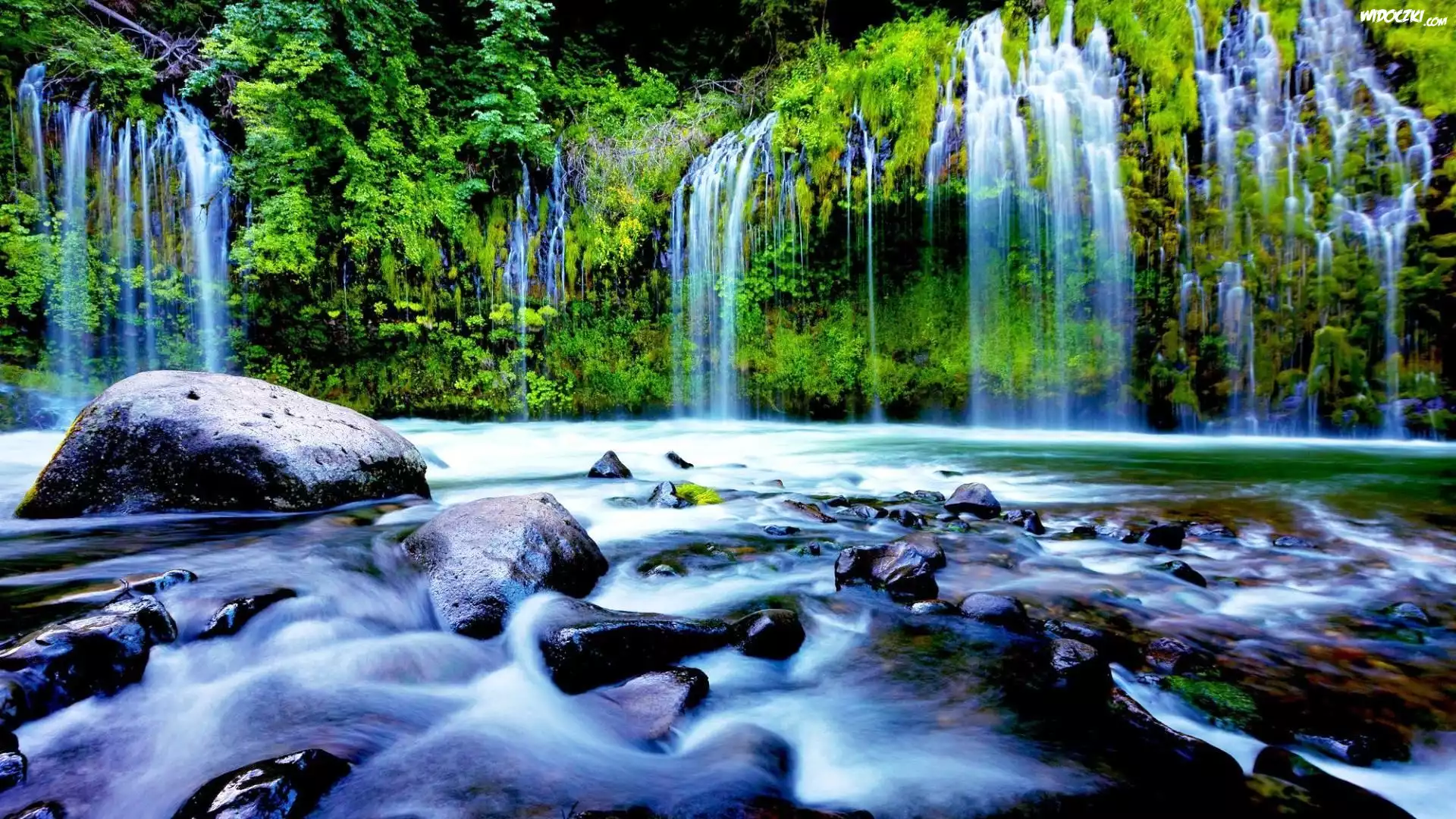 Wodospad, Las, Jeziorko, Kamienie
