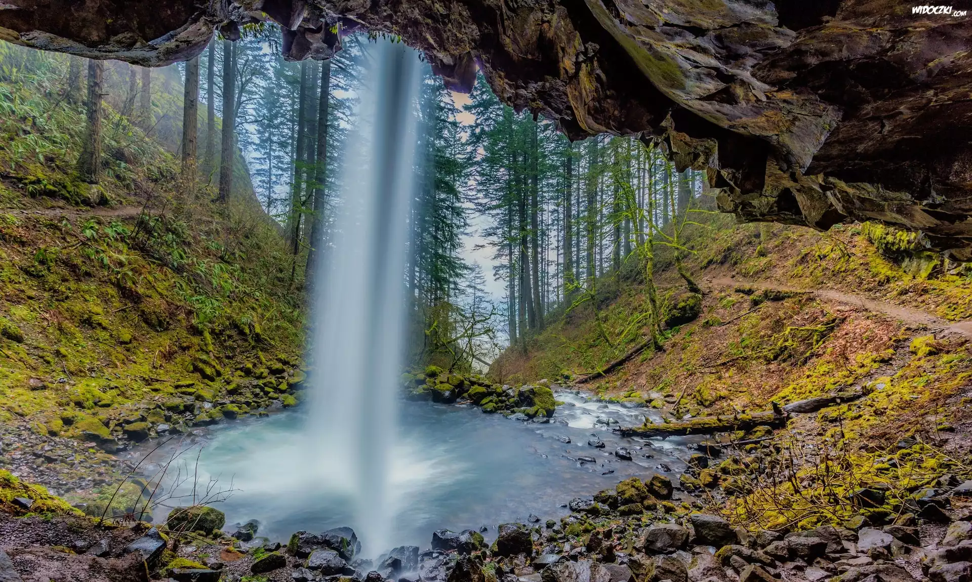 Zdjęcia, Wodospad, Drzewa, Kamienie, Skała