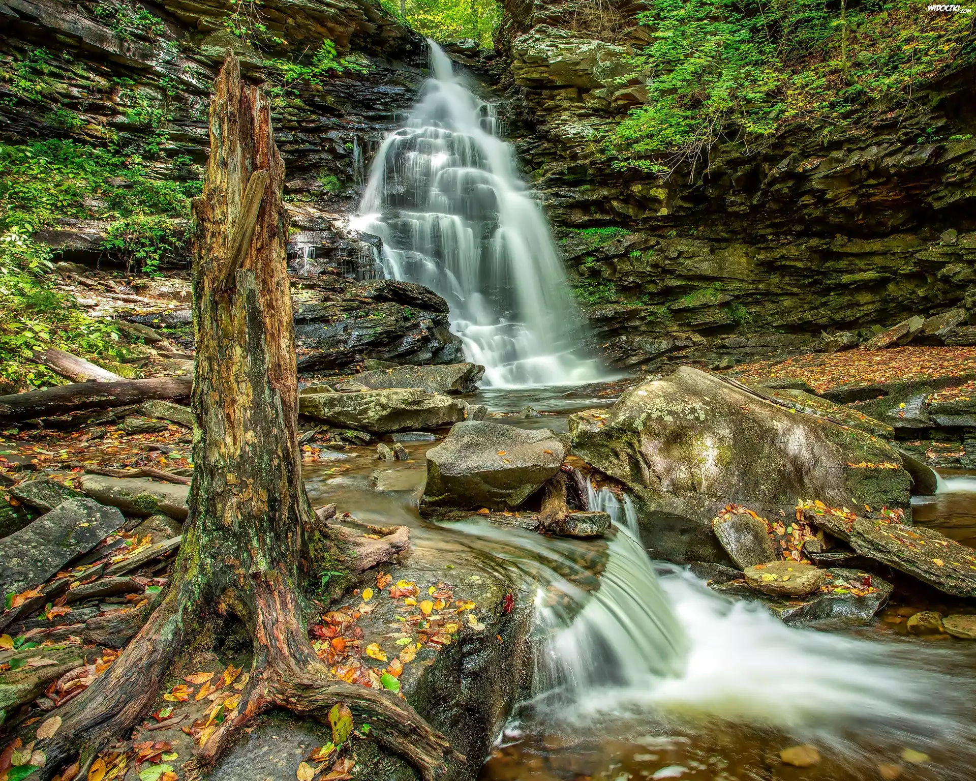 Zdjęcia, Wodospad, Kaskada, Kamienie, Jesień