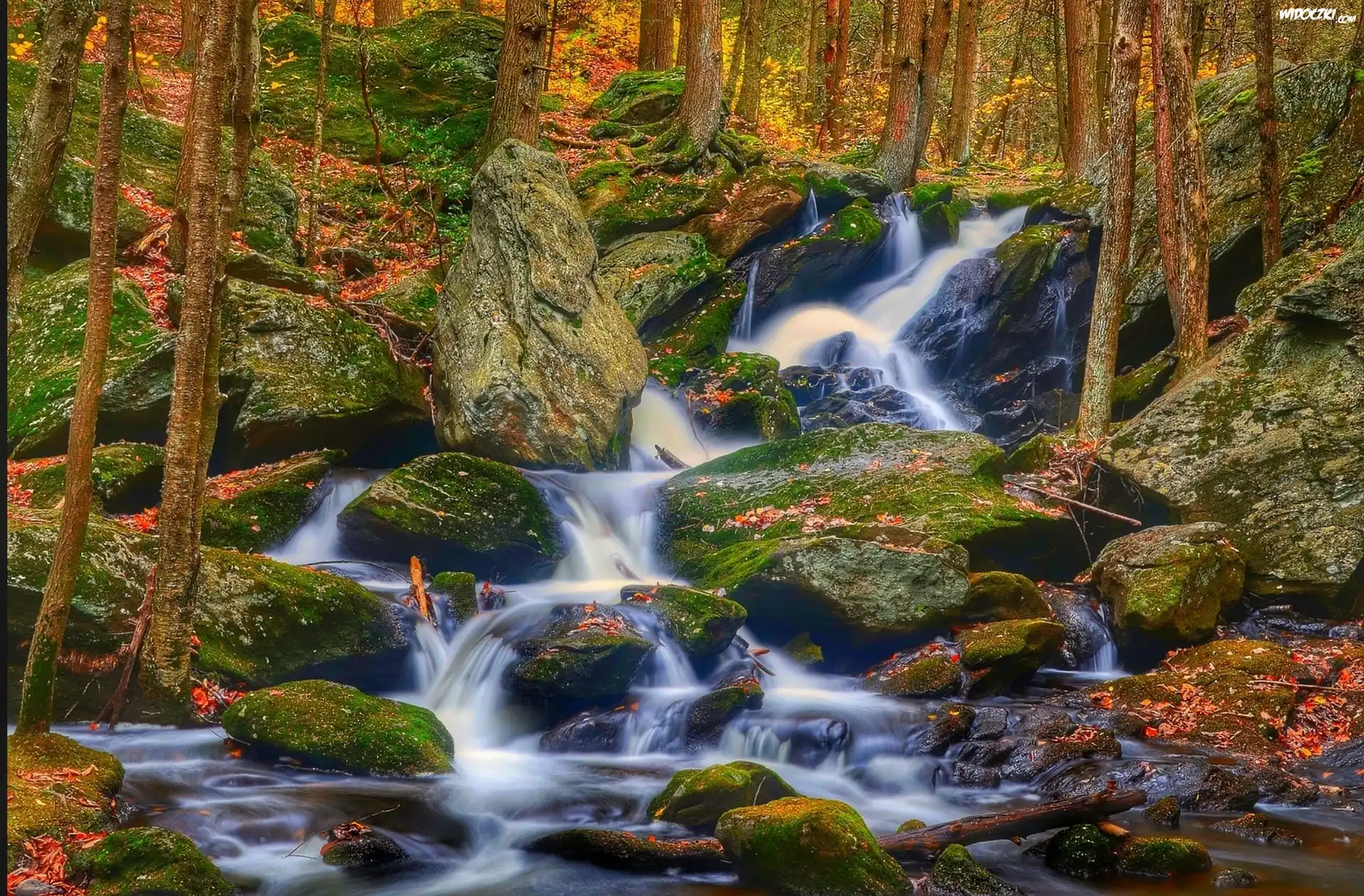Wodospad, Las, Kamienie, Jesień