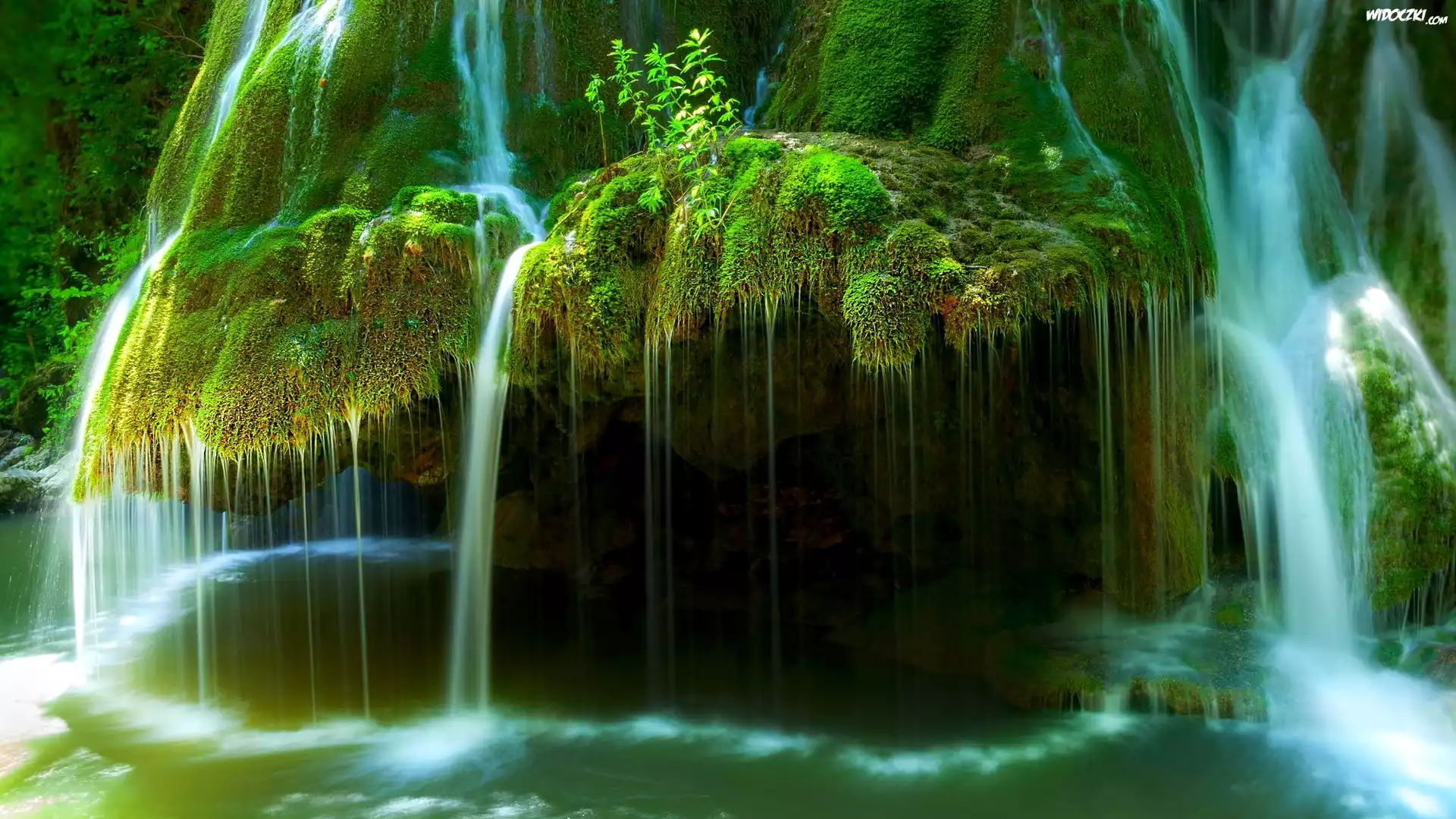 Zdjęcia, Wodospad, Mech, Kamienie, Zieleń