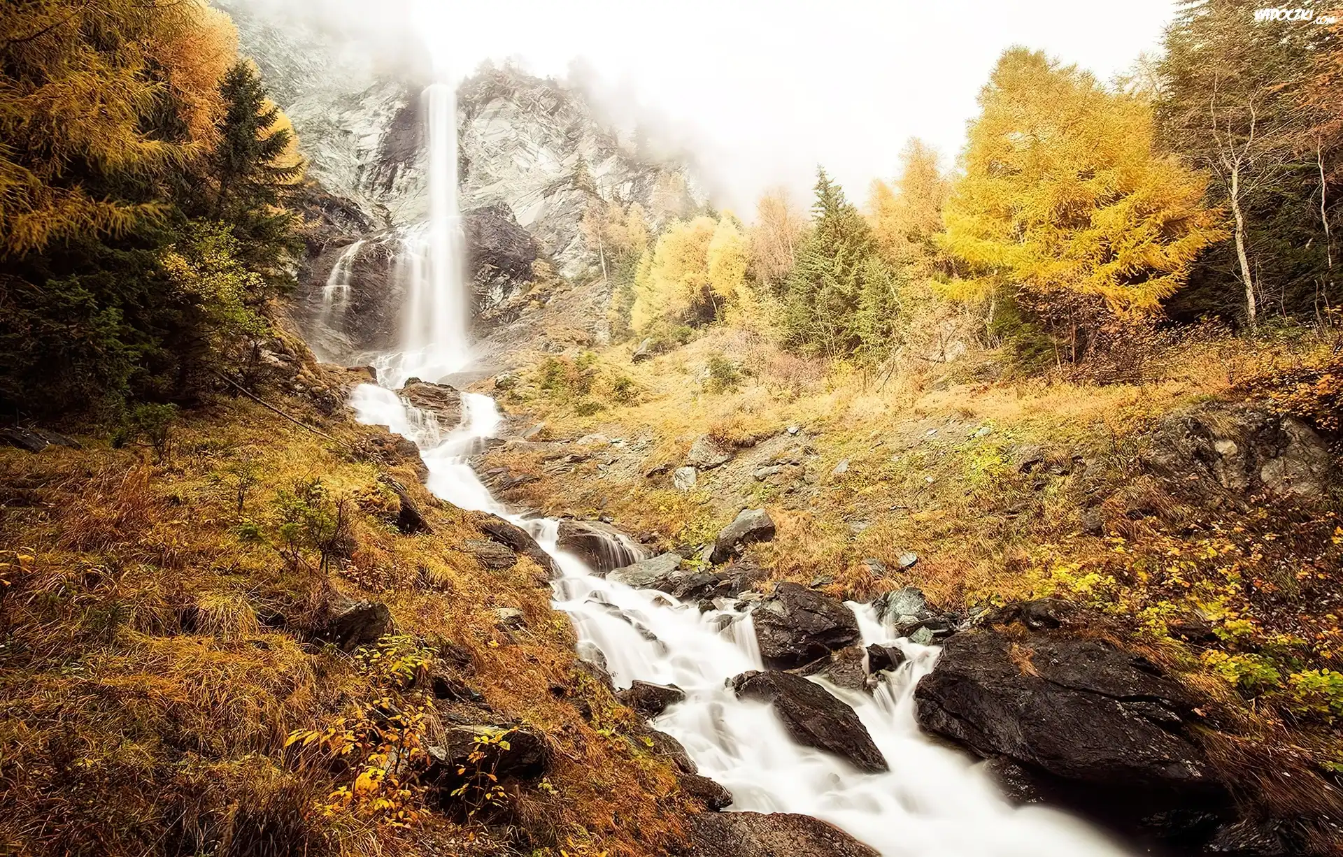 Wodospad, Rzeczka, Kamienie, Roślinność