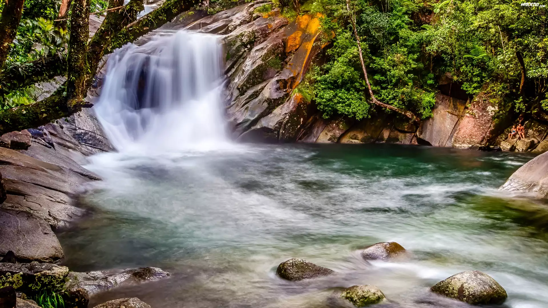 Zdjęcia, Wodospad, Skały, Kamienie, Drzewa