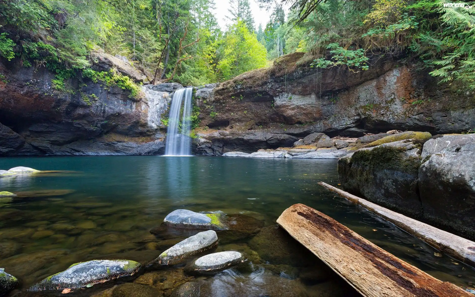 Zdjęcia, Wodospad, Skały, Kamienie, Drzewa