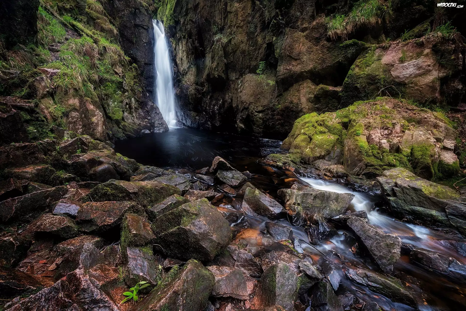 Wodospad Stanley Force, Kamienie, Skały, Wąwóz Stanley Ghyll, Miejscowość Eskdale, Hrabstwo Kumbria, Anglia |