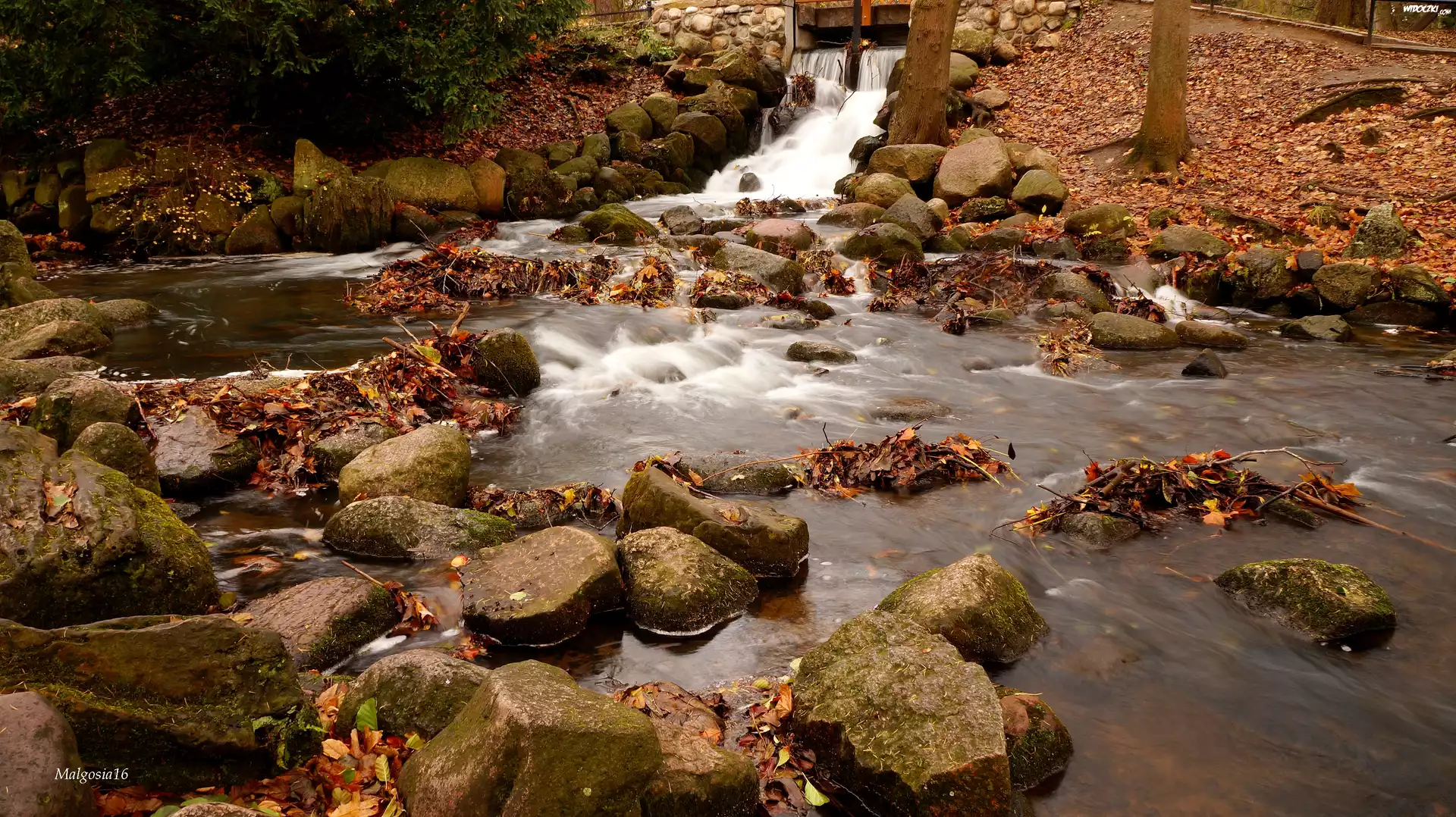 Zdjęcia, Wodospad, Strumień, Woda, Kamienie, Jesień
