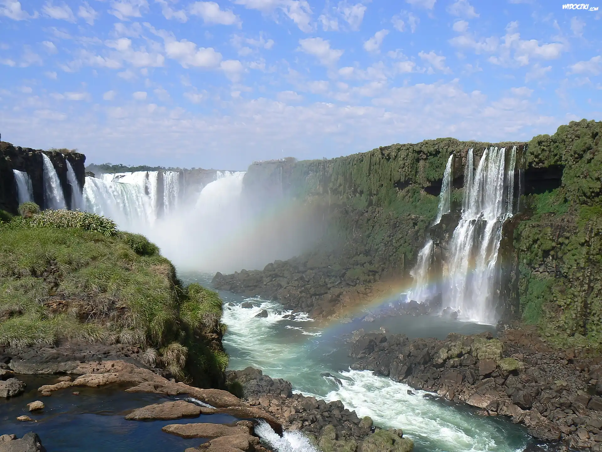 Zdjęcia, Wodospad, Woda, Kamienie, Tęcza