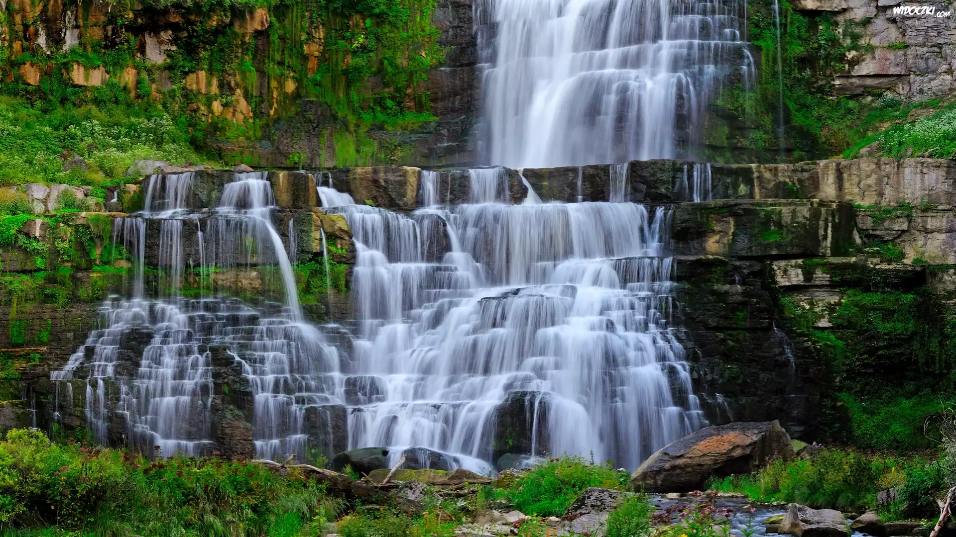 Wodospad, Chittenango Falls, Kaskada, Skały, Kamienie, Roślinność, Park miejski, Nowy Jork, Stany Zjednoczone |