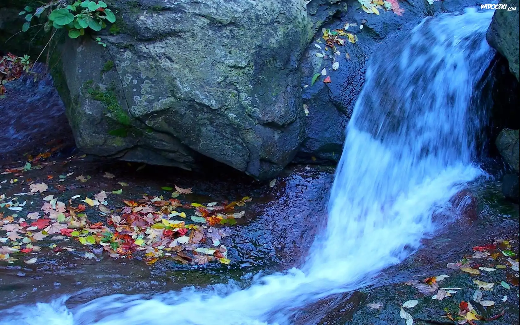 Zdjęcia, Wodospad, Skały, Kolorowe, Liście